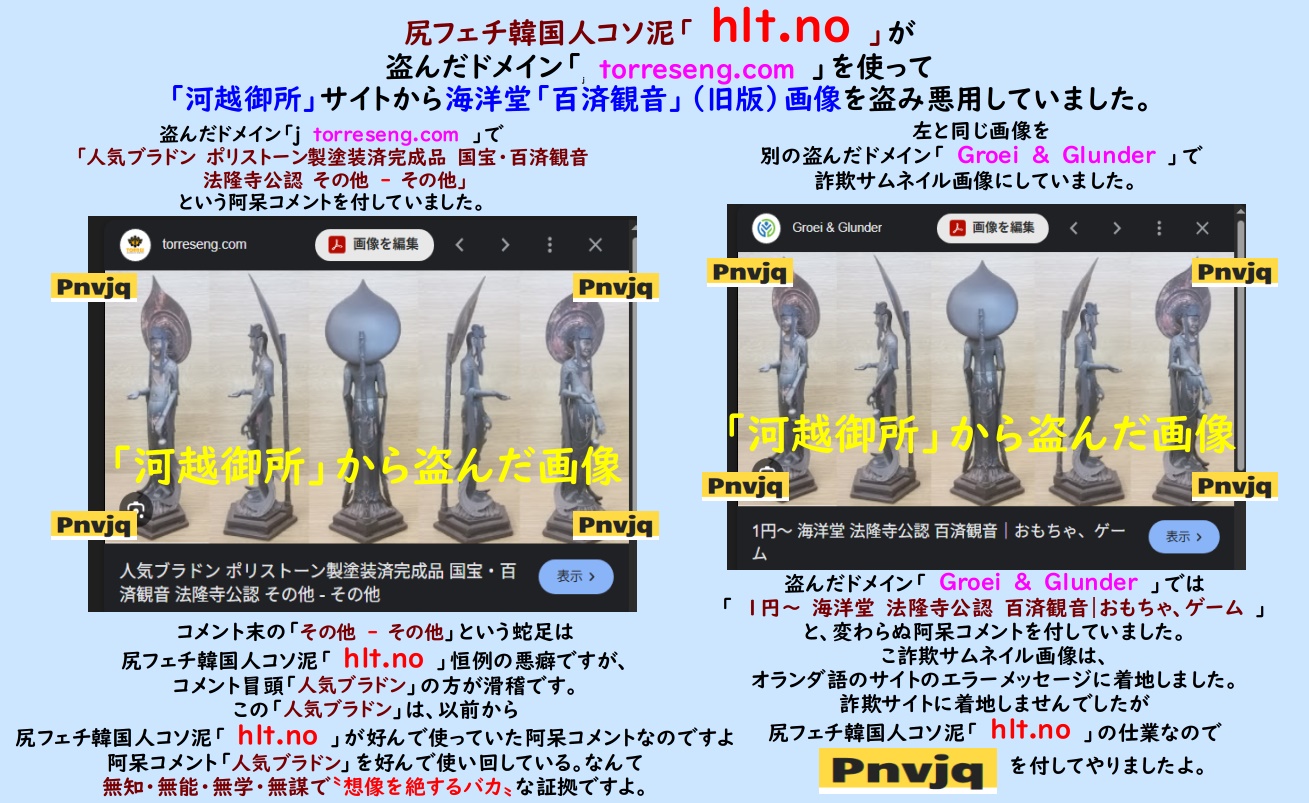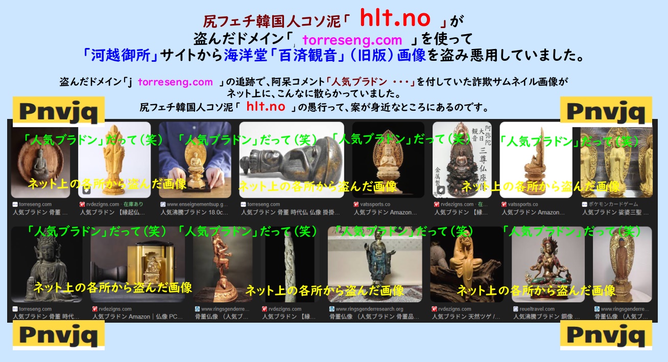 「河越御所」サイトから盗んだ画像から着地した、尻フェチ韓国人コソ泥「 hlt.no 」の詐欺サイトには「海洋堂」様公式HP掲載の「百済観音」画像が掲載されています。