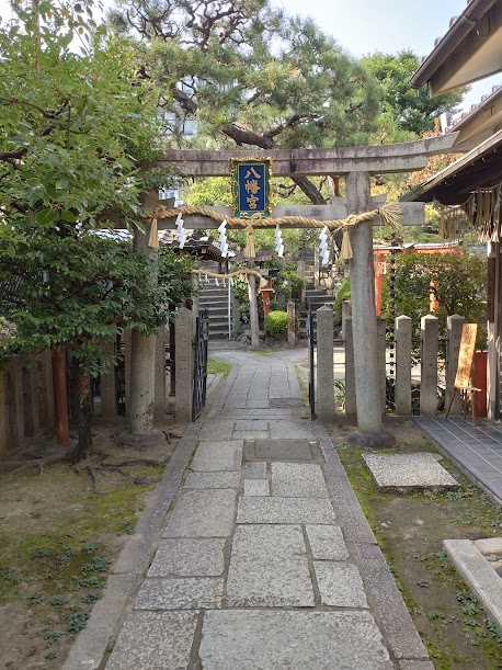 「禁裏道場跡」の前を通過し、「今出川智恵光院」の交差点を左折すると間もなく「首途八幡宮」に到着します。