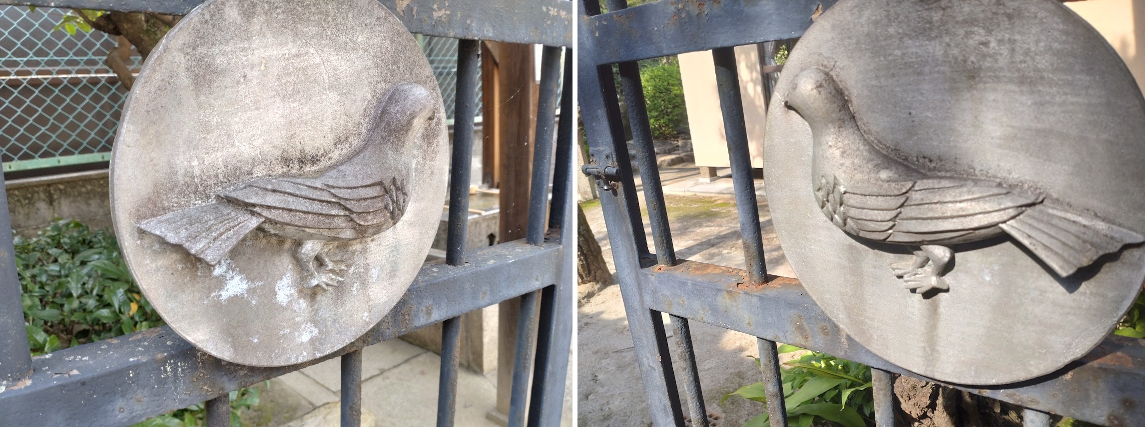 扉には鳩のモニュメントが付けられていることに気付きました。
