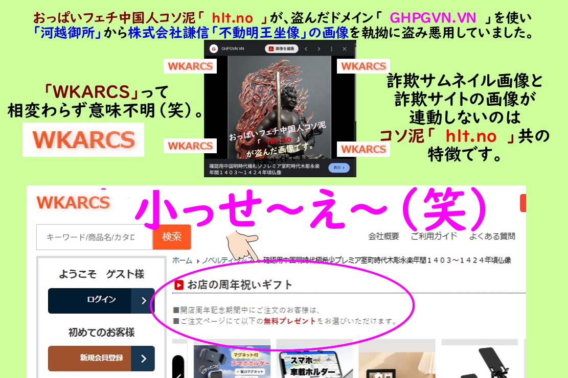 此奴等(コソ泥「 hlt.no 」共)が「河越御所」から画像/情報を盗んで詐欺サイトに/詐欺サムネイル画像に悪用したことが事の発端ですからね。