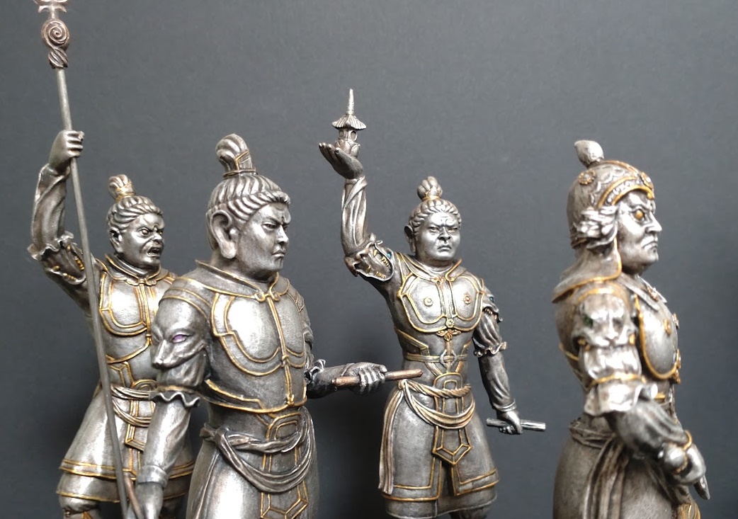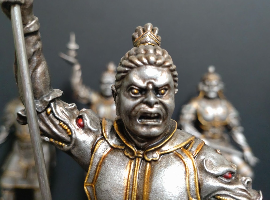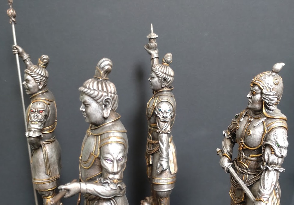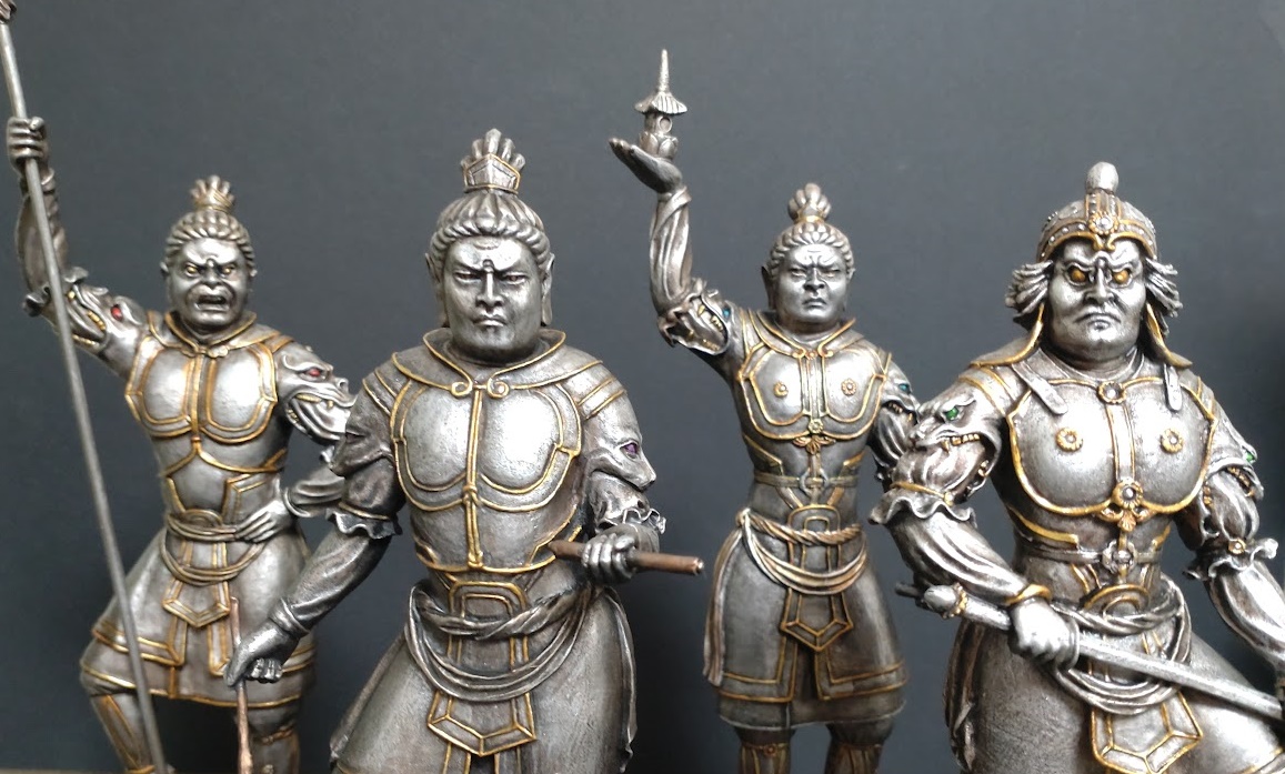 下段は、今回「スペクトルお兄」さんにリペイント改造していただいたM-ARTSリアル仏像「四天王」で、配列は上段と同様です。