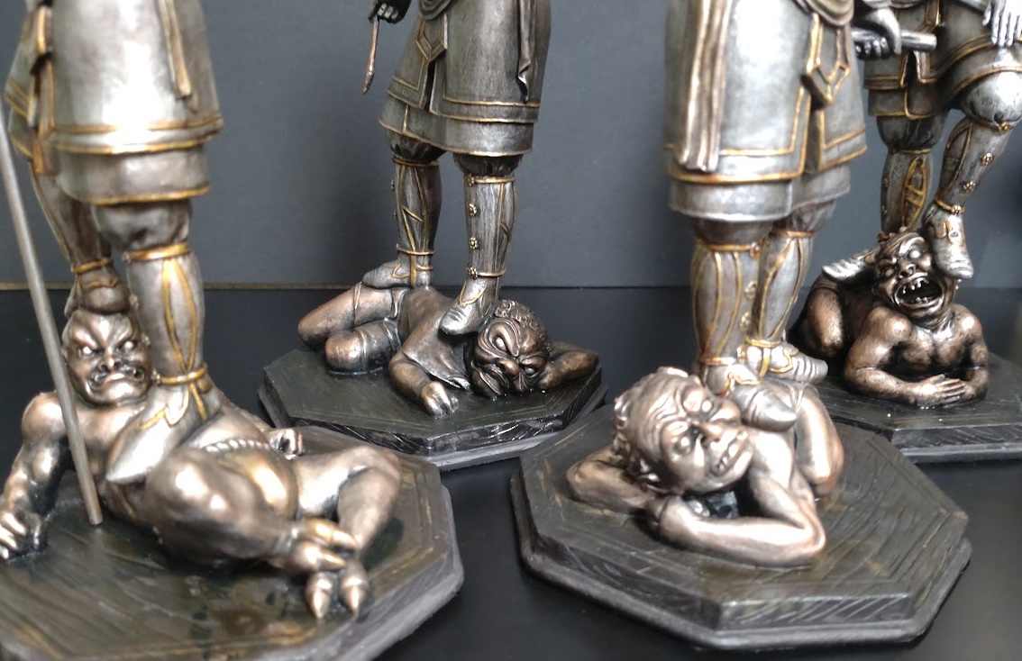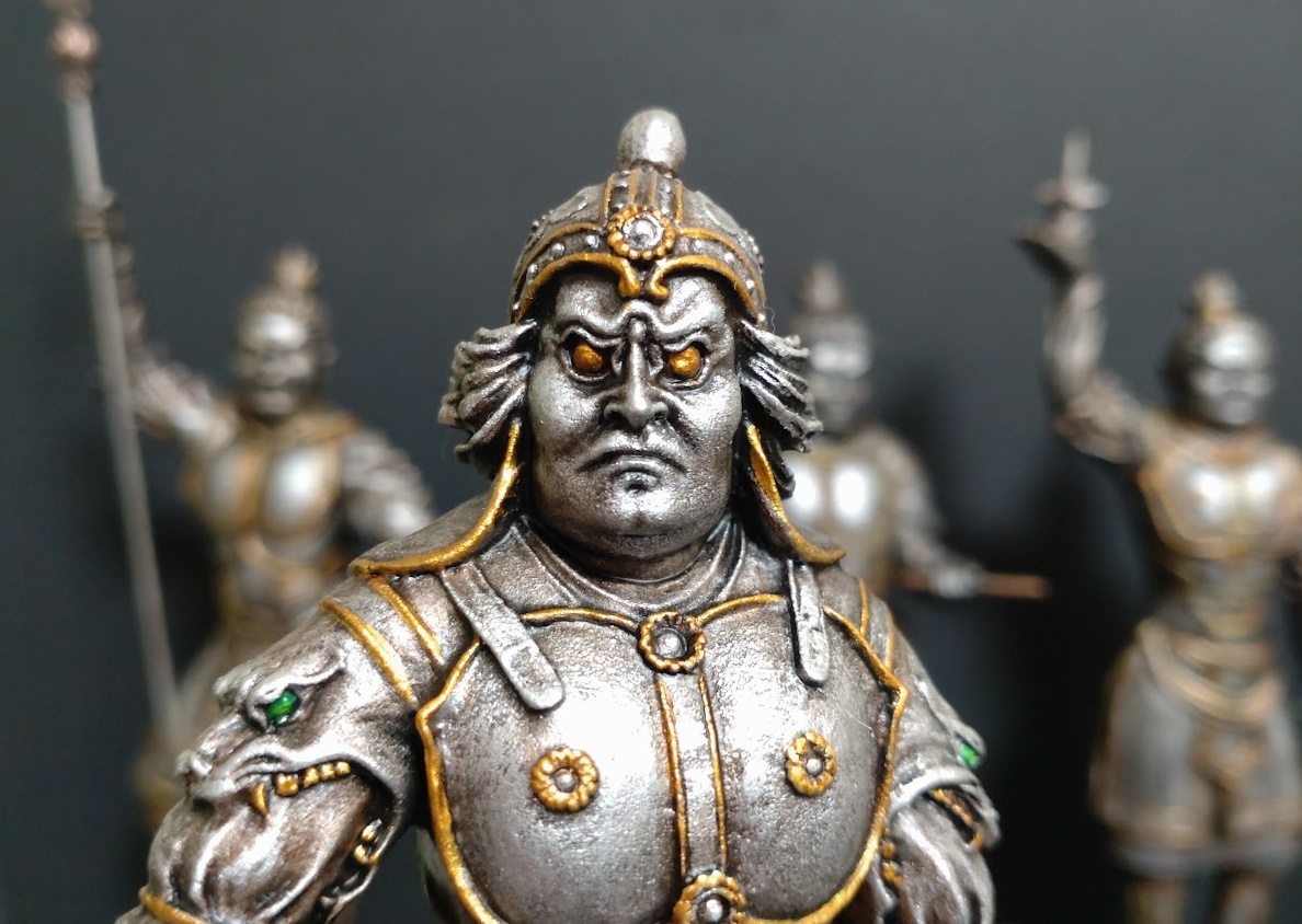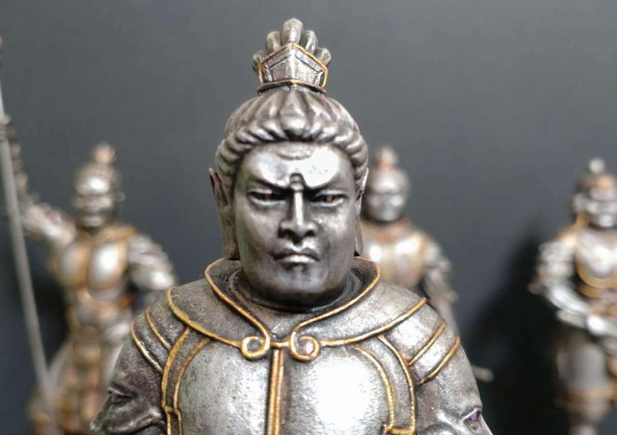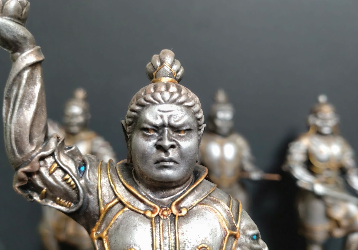 下段は、今回「スペクトルお兄」さんにリペイント改造していただいたM-ARTSリアル仏像「四天王」で、配列は上段と同様です。