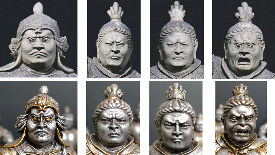 上段は本物(東大寺戒壇堂モデル)のお顔、左から「持国天」「多聞天」「広目天」「増長天」です。