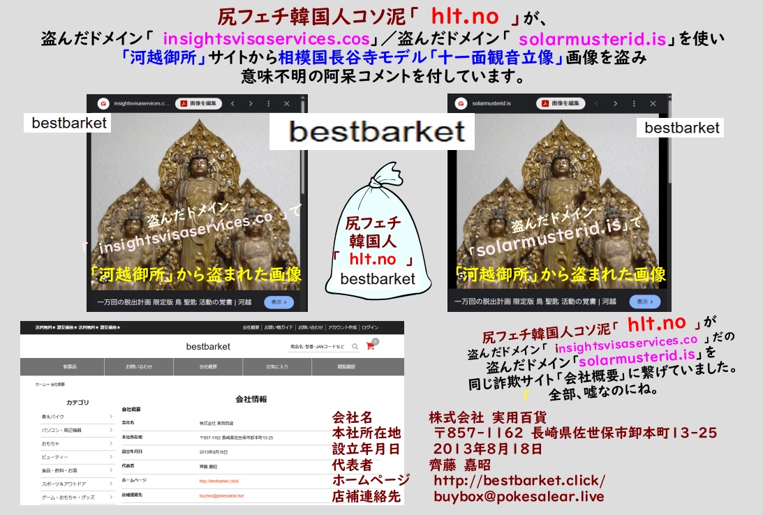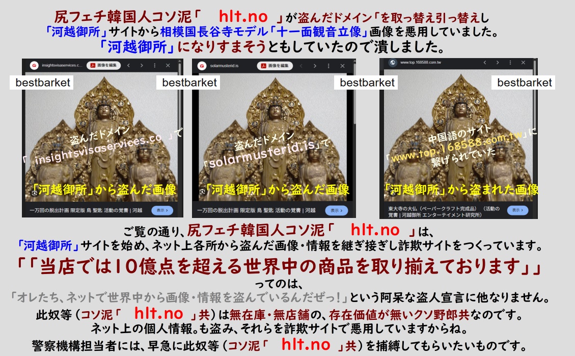 尻フェチ韓国人コソ泥「 hlt.no 」が盗んだドメイン「 solarmusterid.is 」を使い、「河越御所」サイトから相模国長谷寺モデル「十一面観音立像」大・小3体並べ画像を盗み、これまた何処かから盗んだコメント