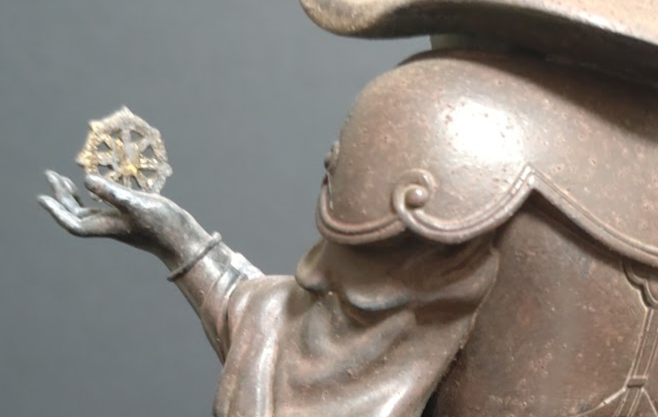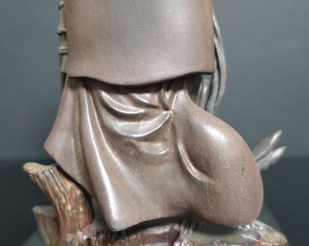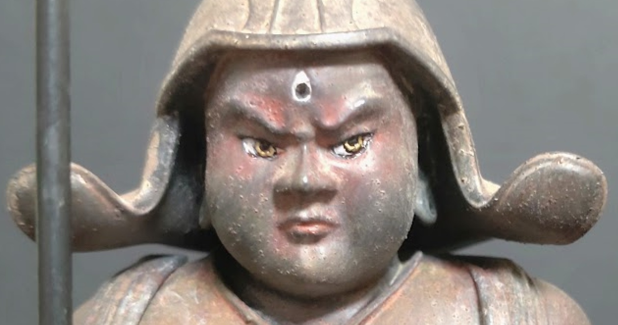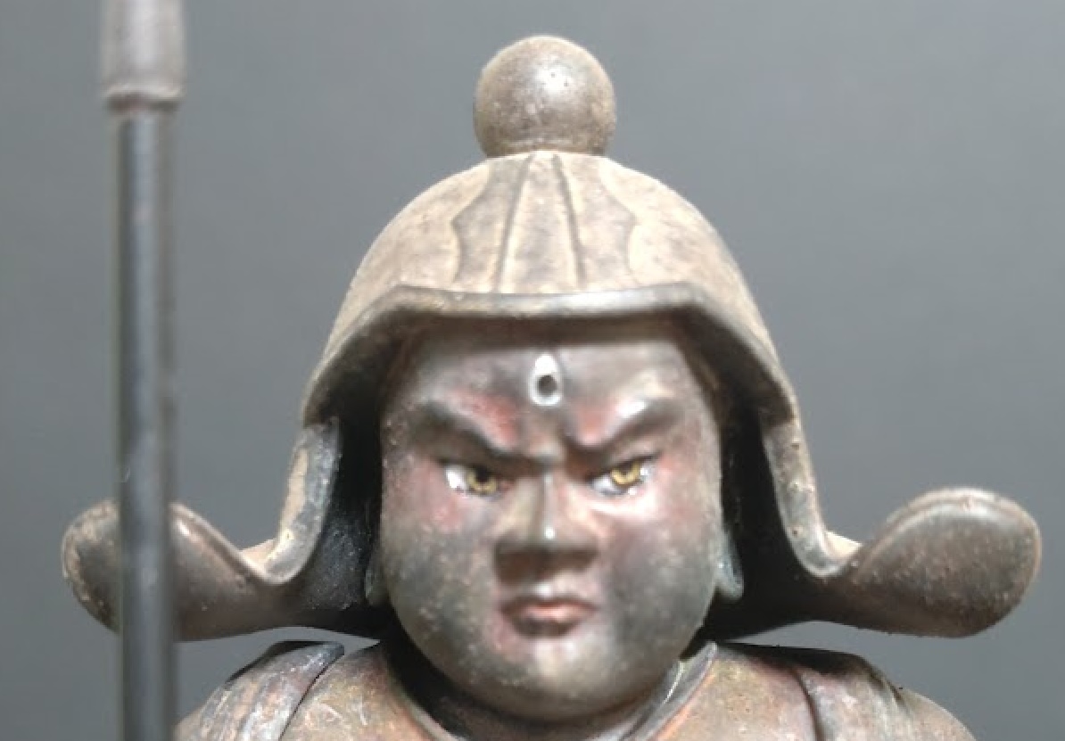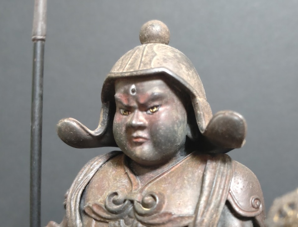 実戦用の兜である必要が無いこと、恐らく仏師の兜に対するイメージによって〝お顔が見える〟デザインになったのではないでしょうか。
