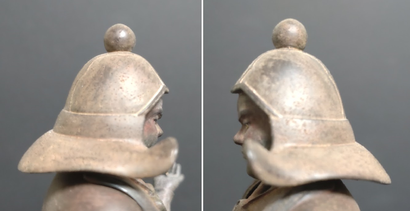 中国風?の兜をベースにしていますが、鎌倉時代後期~南北朝期にかけての日本の兜をイメージしているかの様ですね。