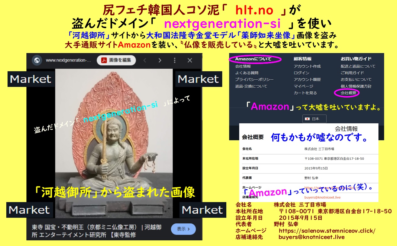 尻フェチ韓国人コソ泥「 hlt.no 」が盗んだドメイン「 nextgeneration-si 」を使い、「河越御所」サイトから執拗に盗む京都ミニ仏像工房・山城国東寺講堂モデル「不動明王坐像」画像を盗み、そこに