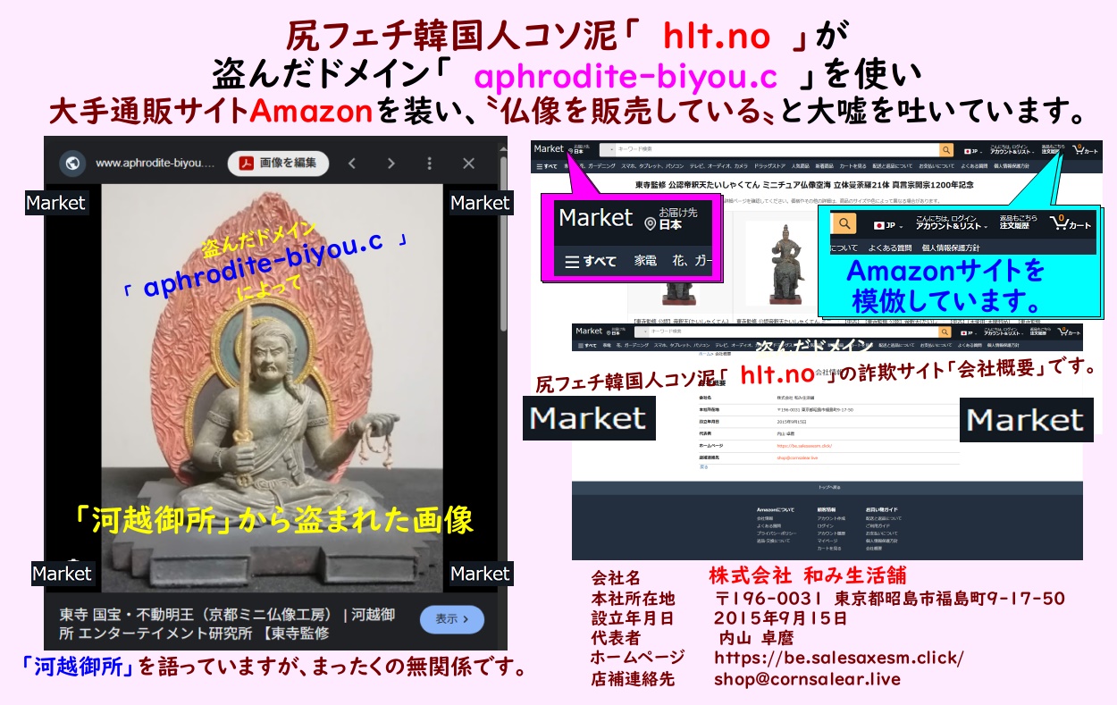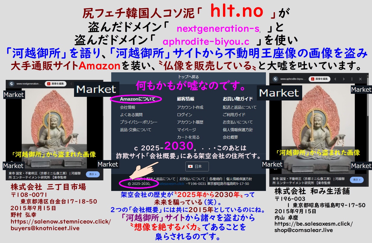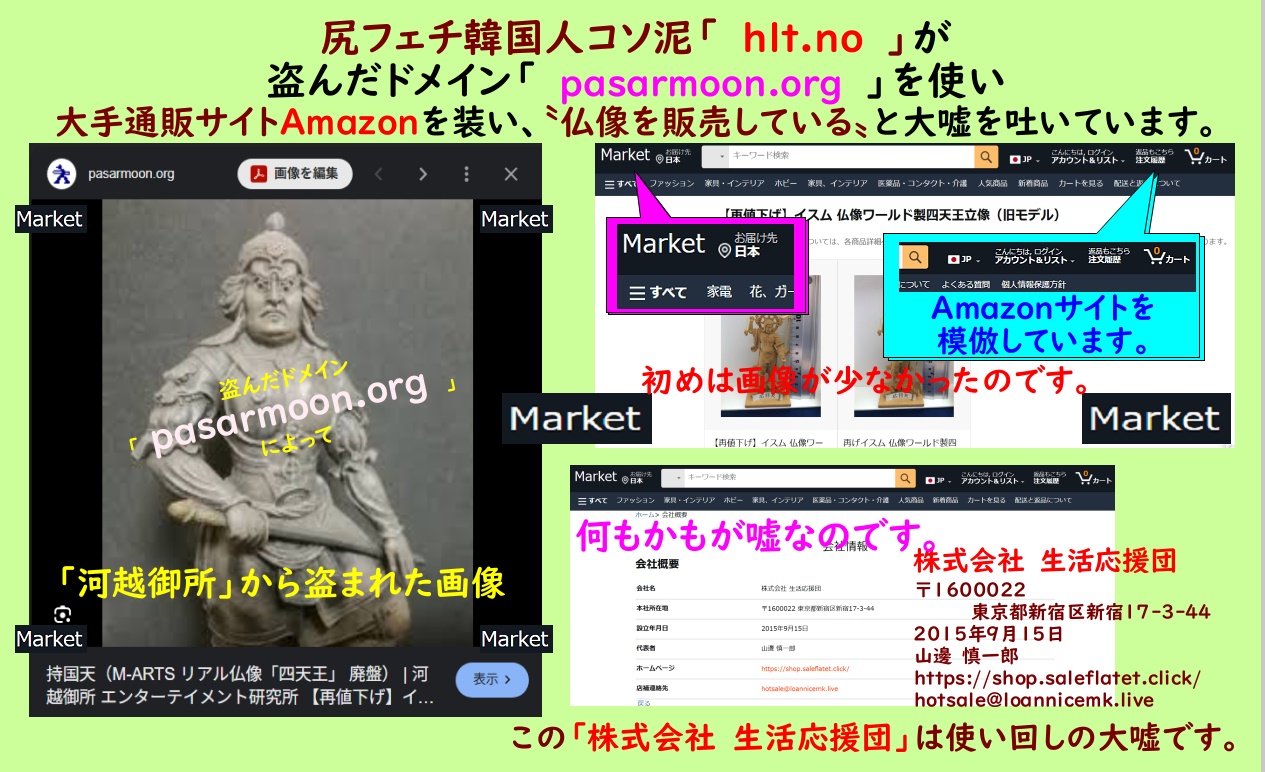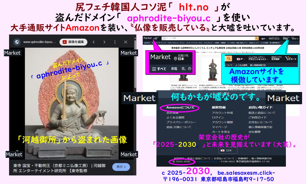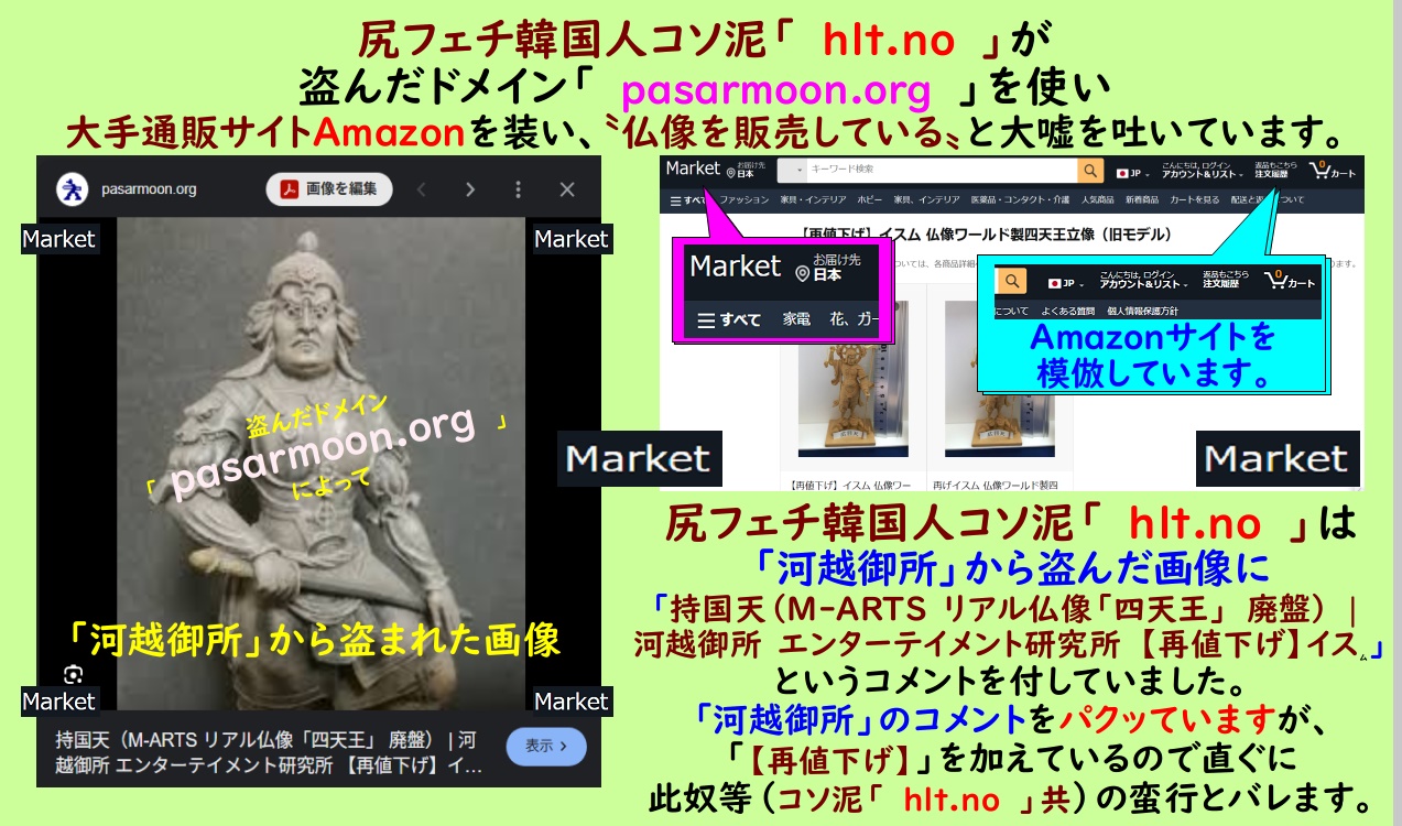 あれから数日しか経過していないのに、〝想像を絶するバカ〟な尻フェチ韓国人コソ泥「 hlt.no 」は、「河越御所」サイトから他の画像を盗んで「Amazon」サイトを装う詐欺サイトに繋げて居ました。