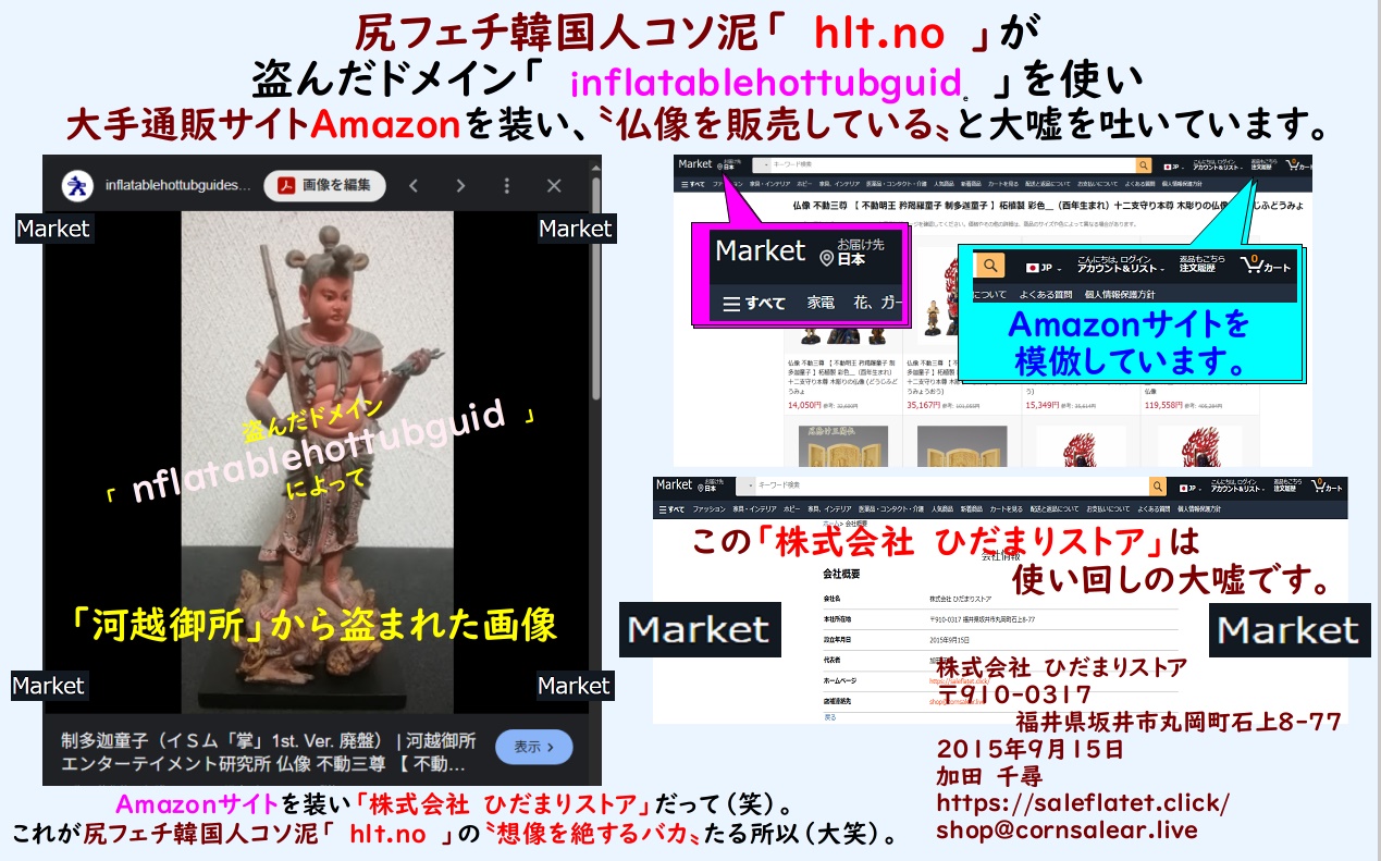此奴等(コソ泥「 hlt.no 」共)は、ネット上の情報を盗んで継ぎ接ぎしてい詐欺サイトをつくっているのですが、「河越御所」に吊るし上げられることにより、此奴等(コソ泥「 hlt.no 」共)の手の内が暴露されていくのです。