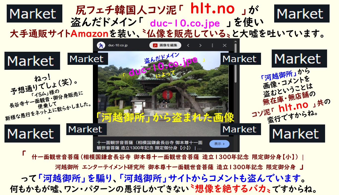 「イSム」様の相模国長谷寺十一面観音・御分身の期間限定販売に便乗して、尻フェチ韓国人コソ泥「 hlt.no 」が御分身を扱っているという大嘘を吐いていました。