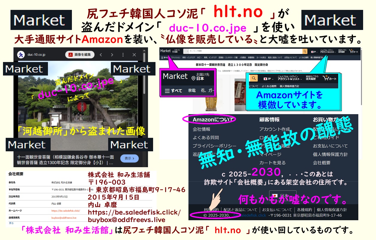 この「株式会社 和み生活舗」ってね、尻フェチ韓国人コソ泥「 hlt.no 」が詐欺サイト「会社概要」で使い回しているものです。