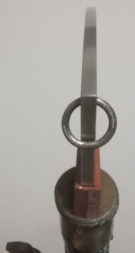 縄状の捻り装飾を備えた胴金は銀鍍金で鎚目を入れてあります。