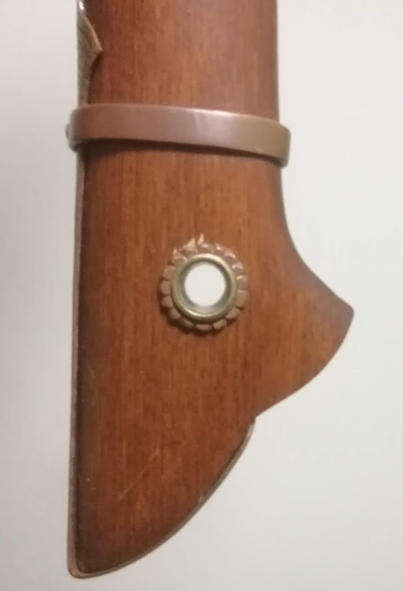 太刀の兜金と同様に、打撃をすることを想定した金具が折り返されていますね。