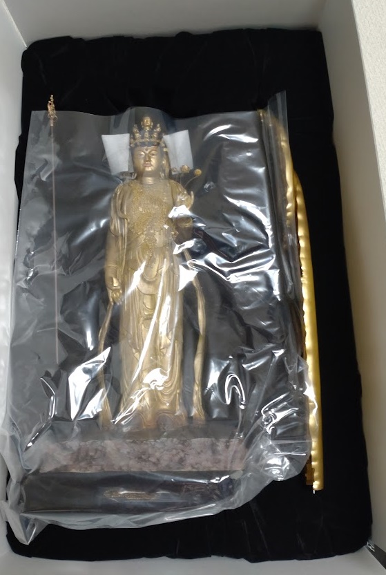 発砲スチロールの蓋を開けると、鎌倉・長谷寺モデルの十一面観音が姿を現します。