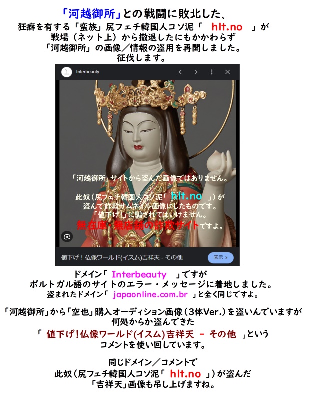 今回のTanaCOCORO「空也上人」購入オーディション(3体Ver.)画像盗用で、此奴(尻フェチ韓国人コソ泥「 hlt.no 」)の詐欺サイトに繋がらないものを吊し上げました。