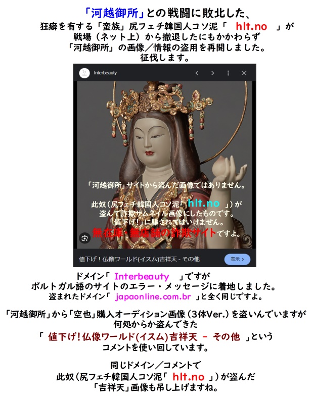 此奴(尻フェチ韓国人コソ泥「 hlt.no 」)は、日本の神仏を冒涜していますから、「河越御所」が「征伐」そして誅戮を展開しているのです。