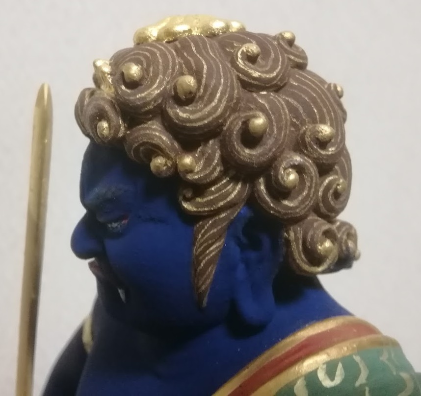 頭髪「莎髻/莎髪」は燃え盛る焔の如く、うねりを見せています。