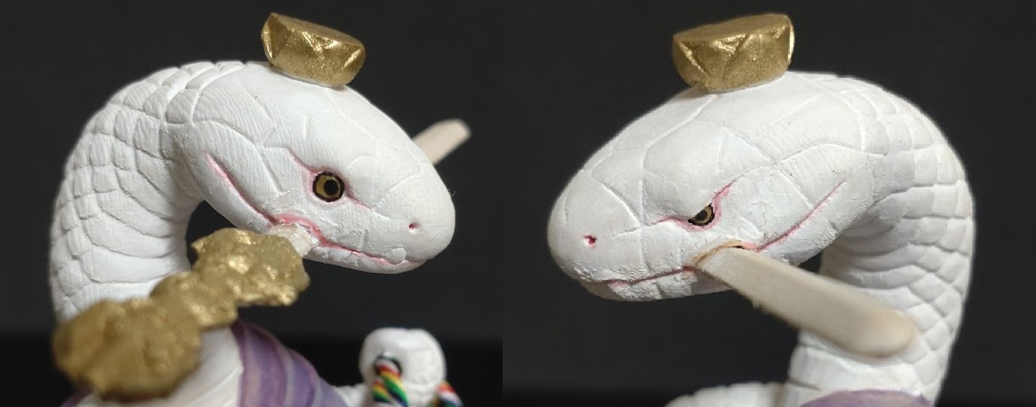 ポリストーン製のインテリア仏像だと彩色の状態をじっくりと観察するのですが、今回の白蛇は『お顔立ち』で決めました。