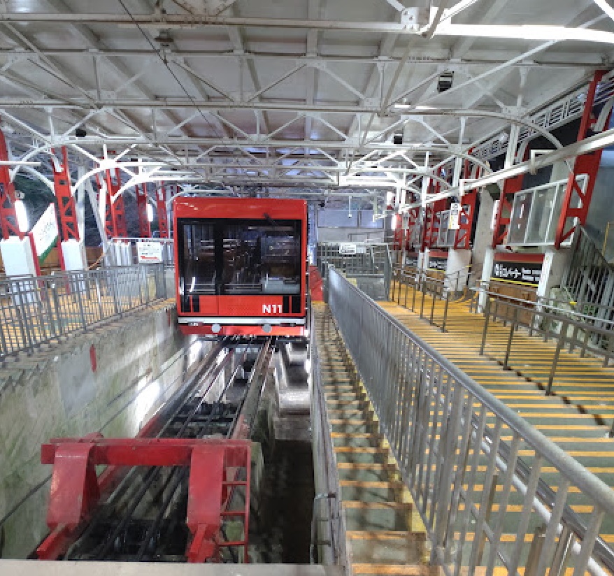 「高野山ケーブルカー」極楽橋駅から高野山駅まで凡そ5分。なかなかな急勾配を上っていきます。