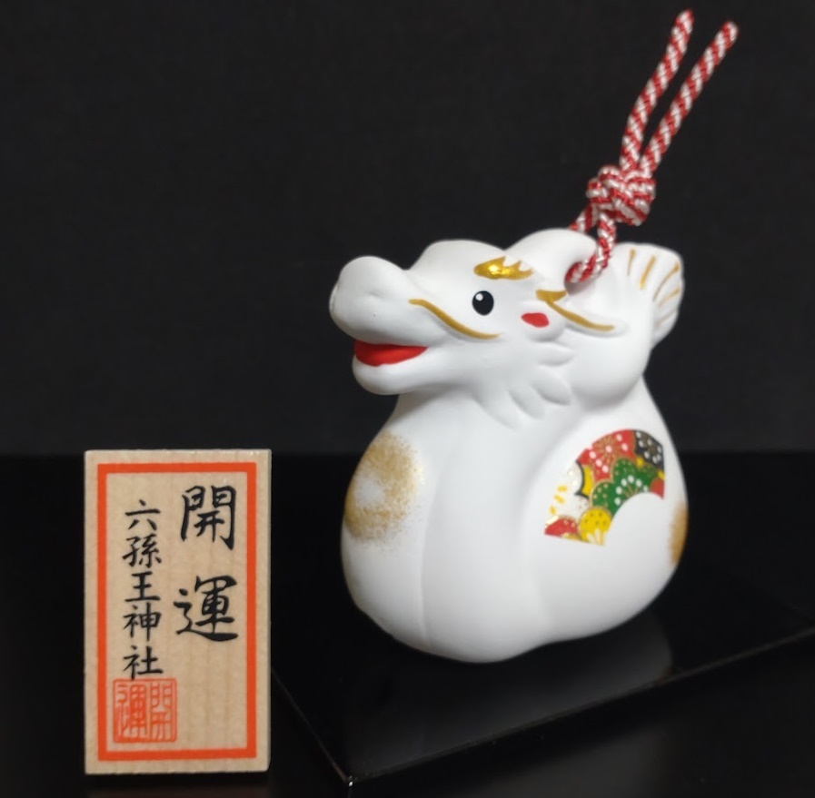 今回、六孫王神社を参拝した際、氏子の皆様が楽しそうに餅搗きをされていました。参拝する時、どの季節であっても境内にほぼ参拝客は居ないことが多いのですが、人びとの声が響く境内は新鮮でしたね。「ねずみ」年から買い続けている六孫王神社の干支土鈴。残念なことに「うさぎ」年はうさぎの干支土鈴を購入することができませんでした。普通だと諦めてしまうのでしょうが、六孫王神社で買い始めましたからね。別に願掛けなぞはしておりませんが、六孫王神社の干支土鈴を揃えたいのでね。小さき神社ですけれども、選んだのは何かしらの意味があるのでしょう。ご覧の如く、にこやかで愛らしい白龍ですの。寺社およびその周辺に居るドラゴンとは違った可愛らしさで、癒やされておりまする。