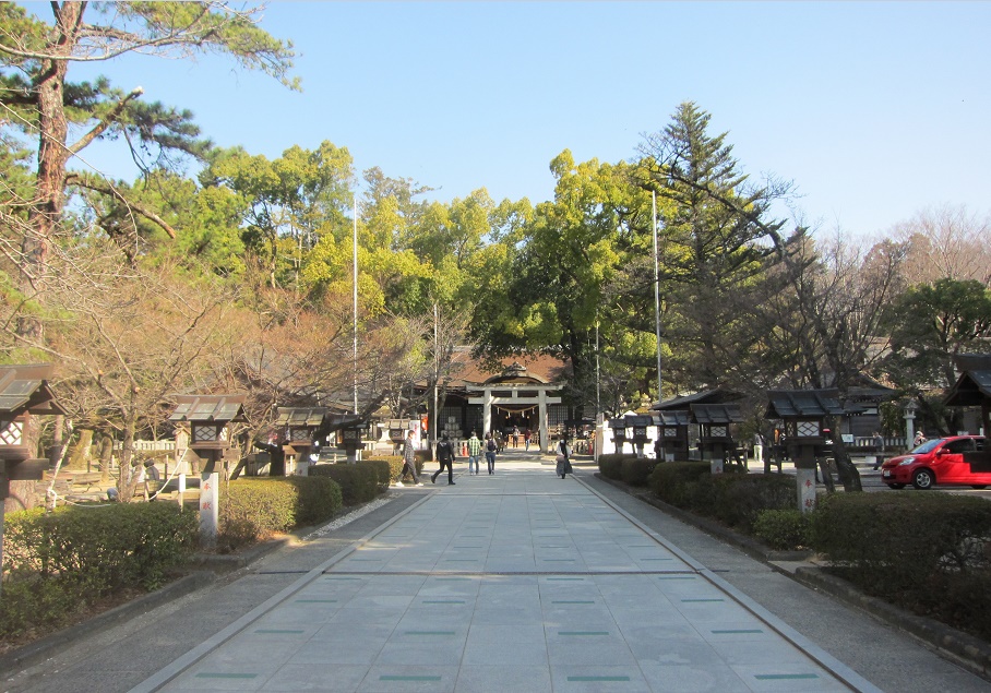 二の鳥居から拝殿を見ています。記念写真を撮影されている参拝客が多く、この角度からの撮影になってしまいました。