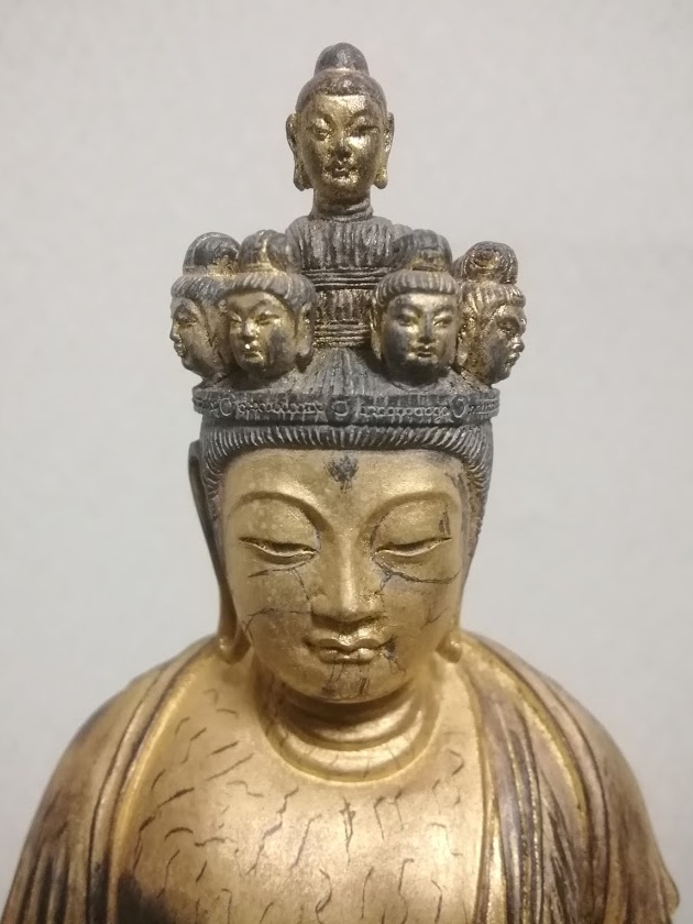 本物ですと、金箔の上に年月を経た埃が乗っていますが、イスム十一面では埃の表現はなされていません。