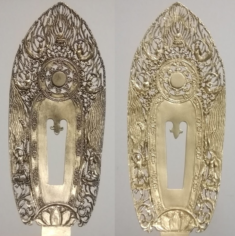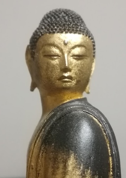 通常版とゴールド仕様では、光背の差し込みの形状が異なっているので、光背の角度が若干異なっています。もしかすると光背の差し込みのほぞ穴による個体差かも知れません。