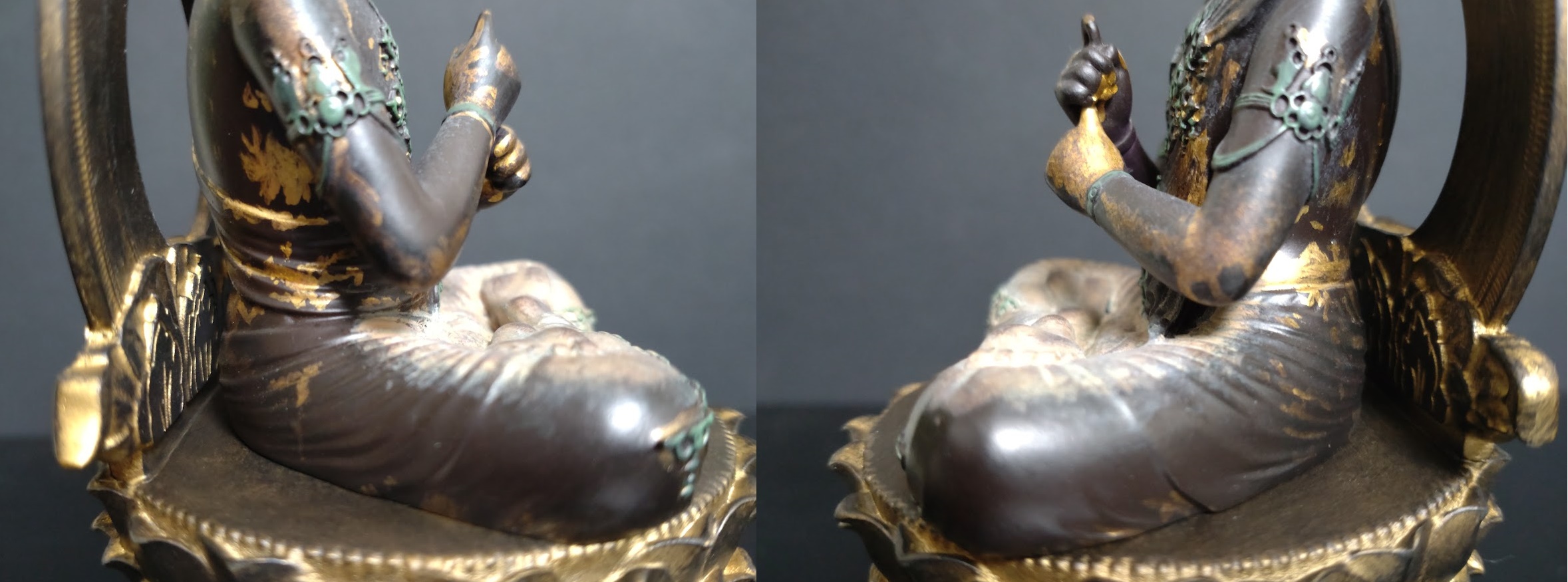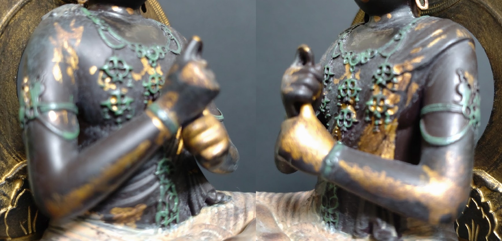 このTanaCOCORO「大日如来」を連れ帰る決め手としたのは、この左手の甲と前腕部の金色の乗り具合でした。