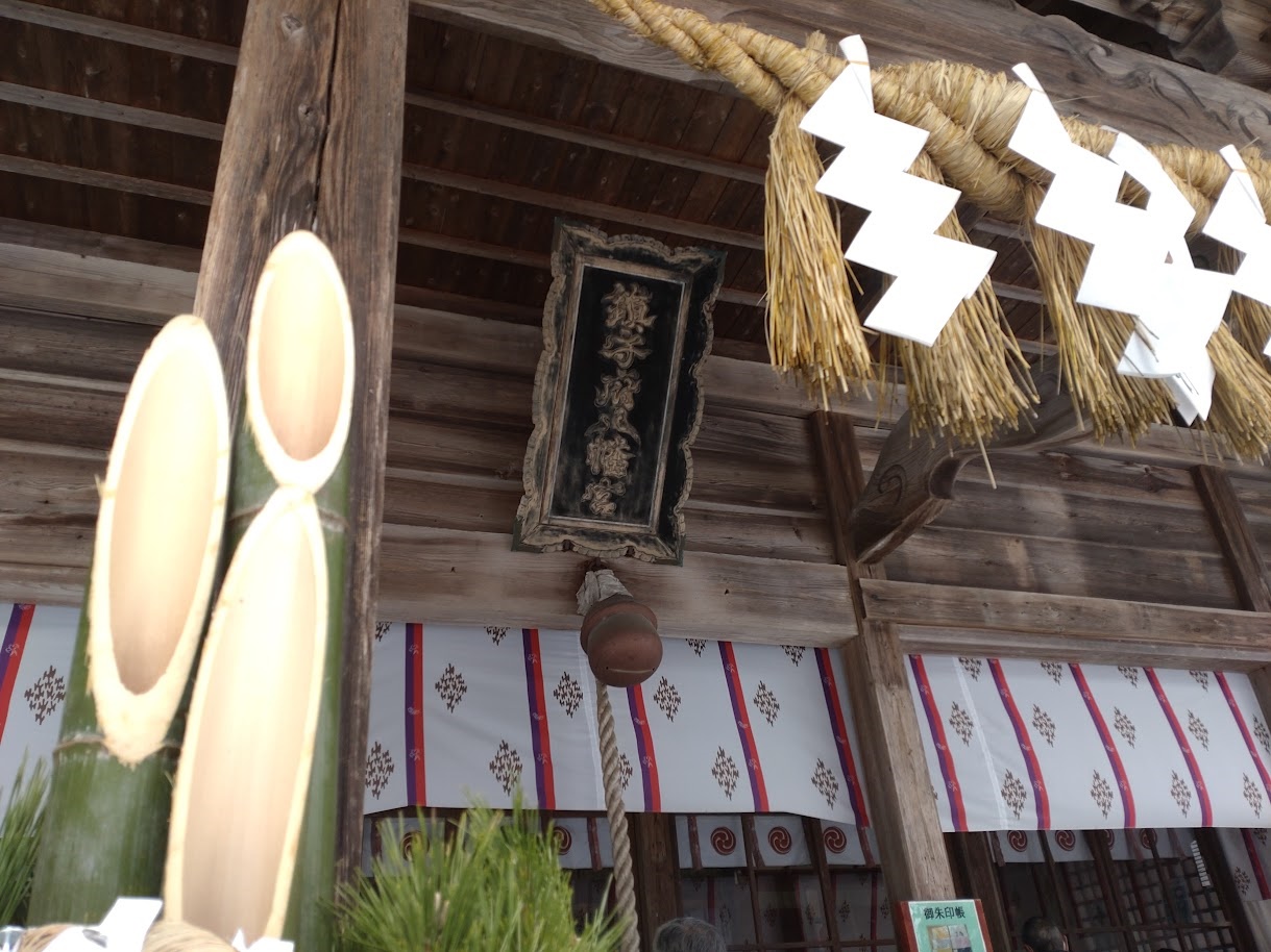 鳥居に立て掛けられた案内表示が年始の装いですね。
