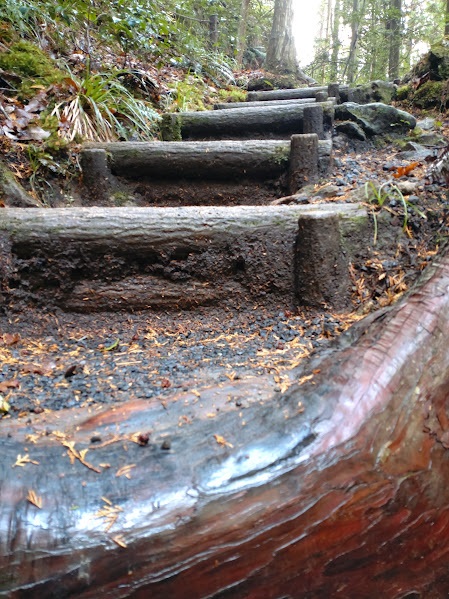 下りる人にとって足場となっている木の根っこ、頑張れっ!