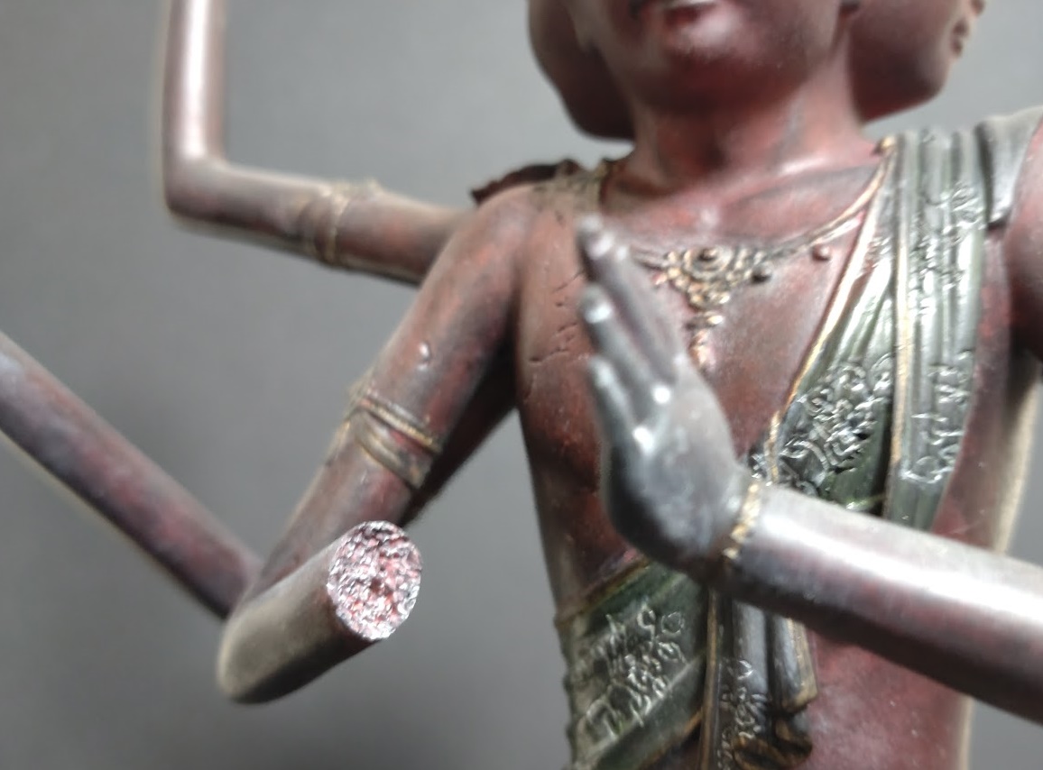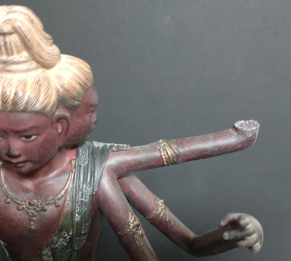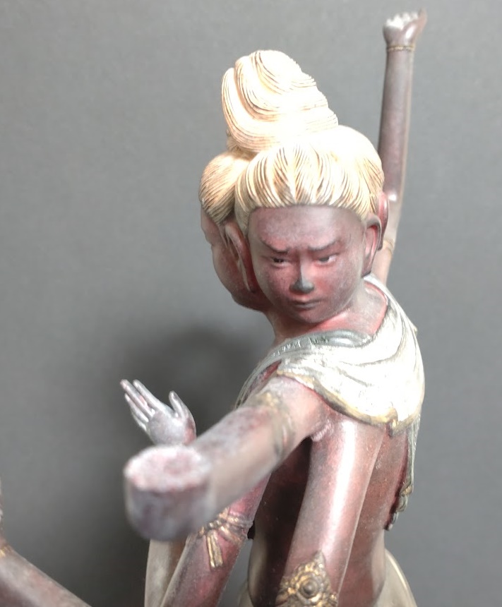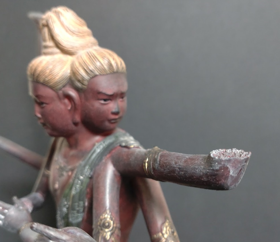 折れた箇所と、その周辺の彩色、通常「阿修羅」と異なる仕上げになっています。