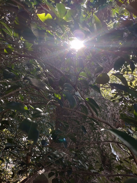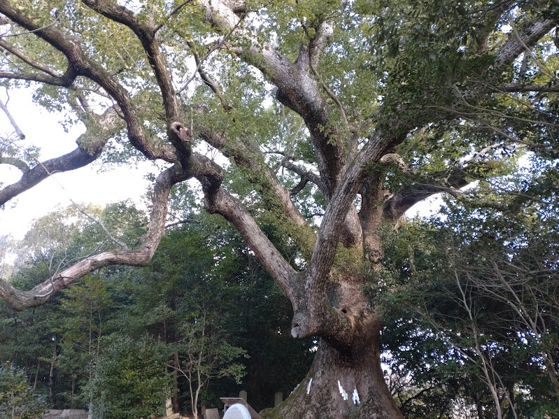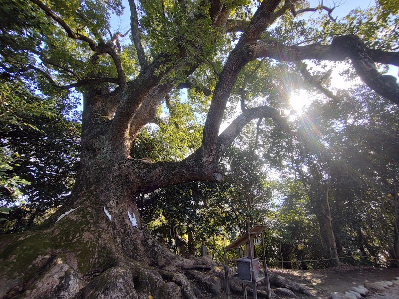 こうやって「楠」の周りで遊んでいたら、枝葉の隙間から天照大神がお顔を出しました。