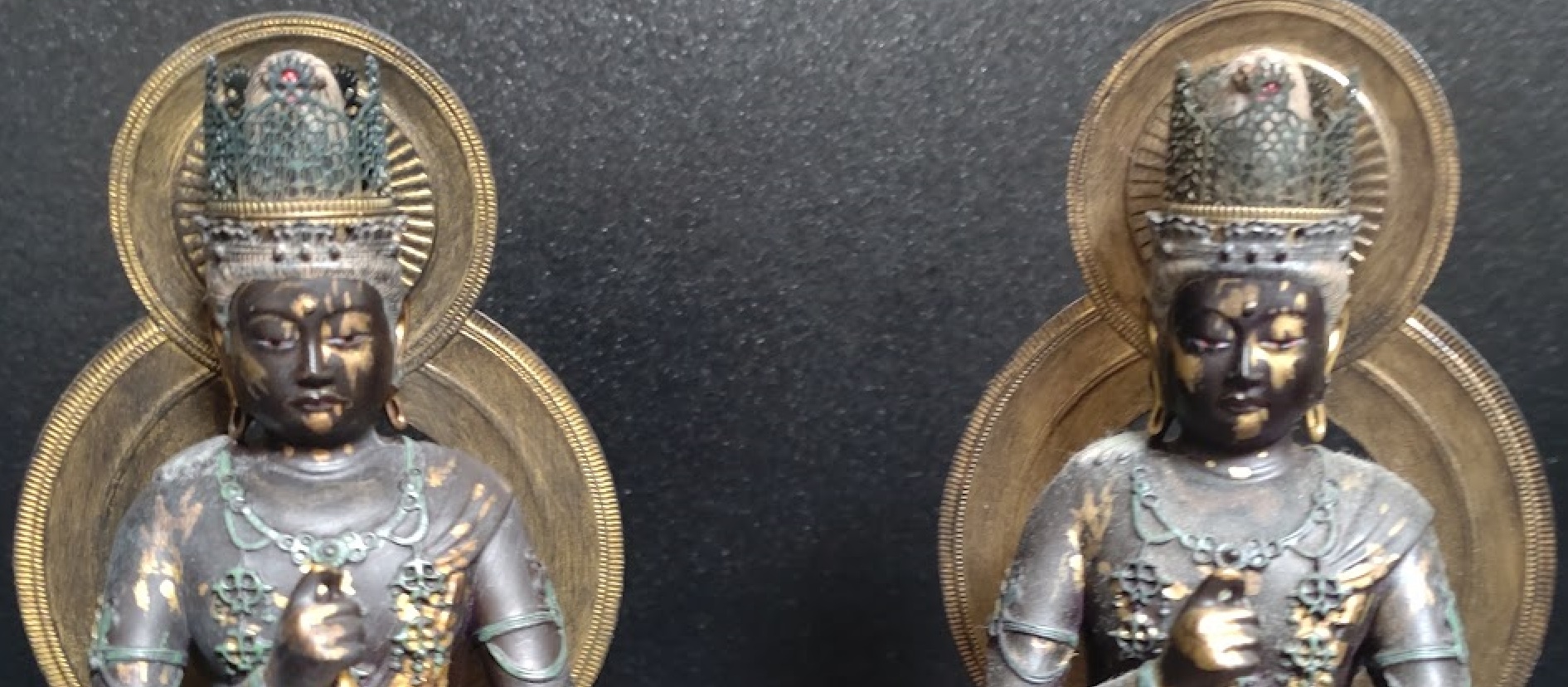 天冠の正面部分、金塗りの状態に違いがありますね。