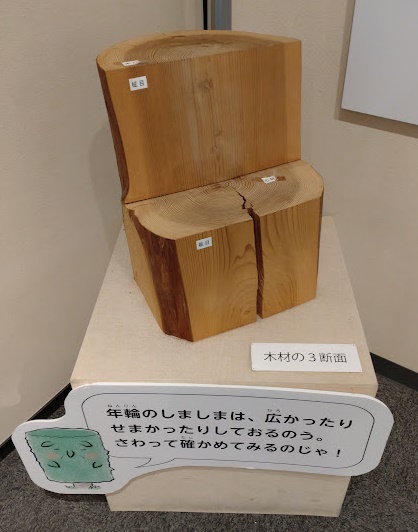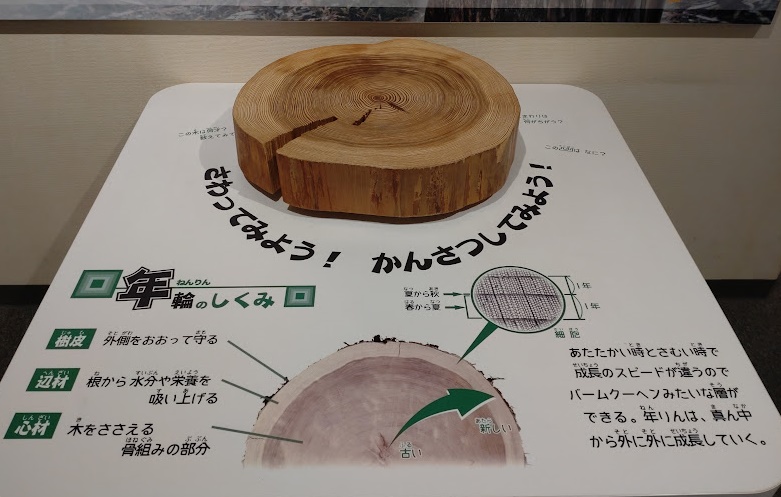 建造物に使用される木材の、「年輪」について学ぶことができる展示です。