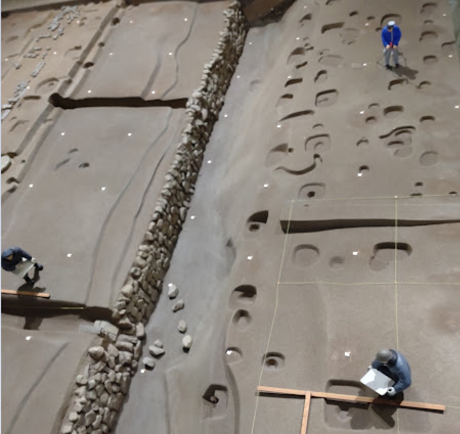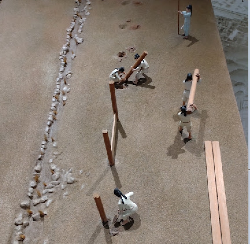 そして発掘調査が終わり、埋め戻しと遺跡保存の整備作業ができた状況を事r¥おらまで表現しています。