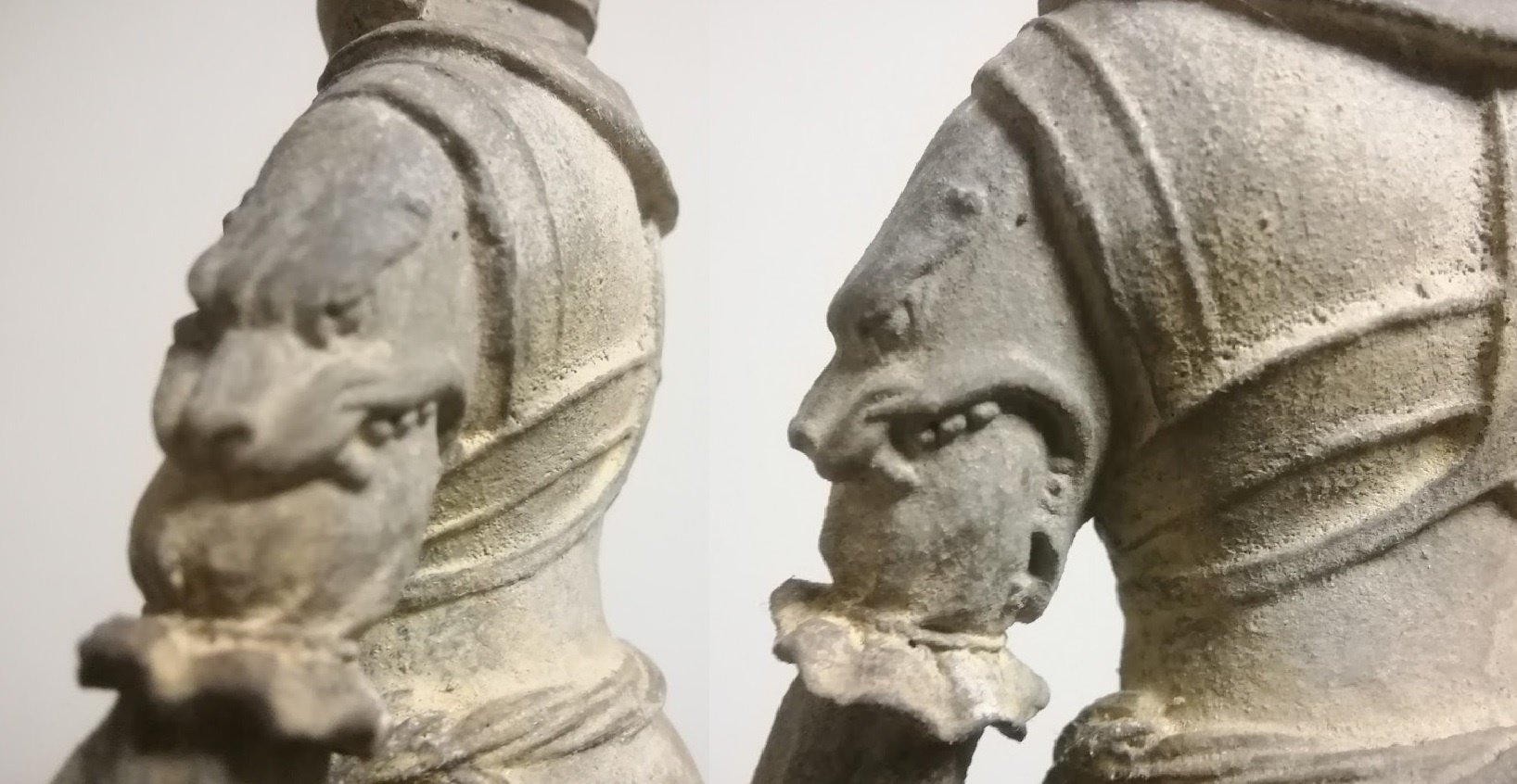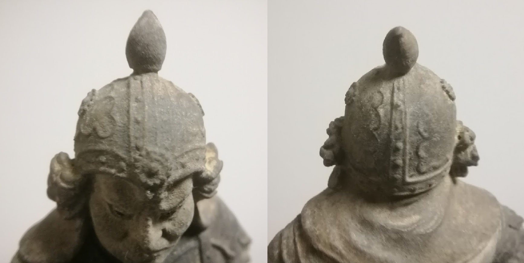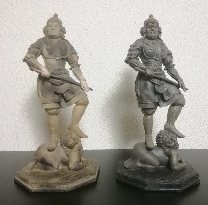 左:仏像ワールド版 篁千礼氏による胡粉塗の「持国天」
