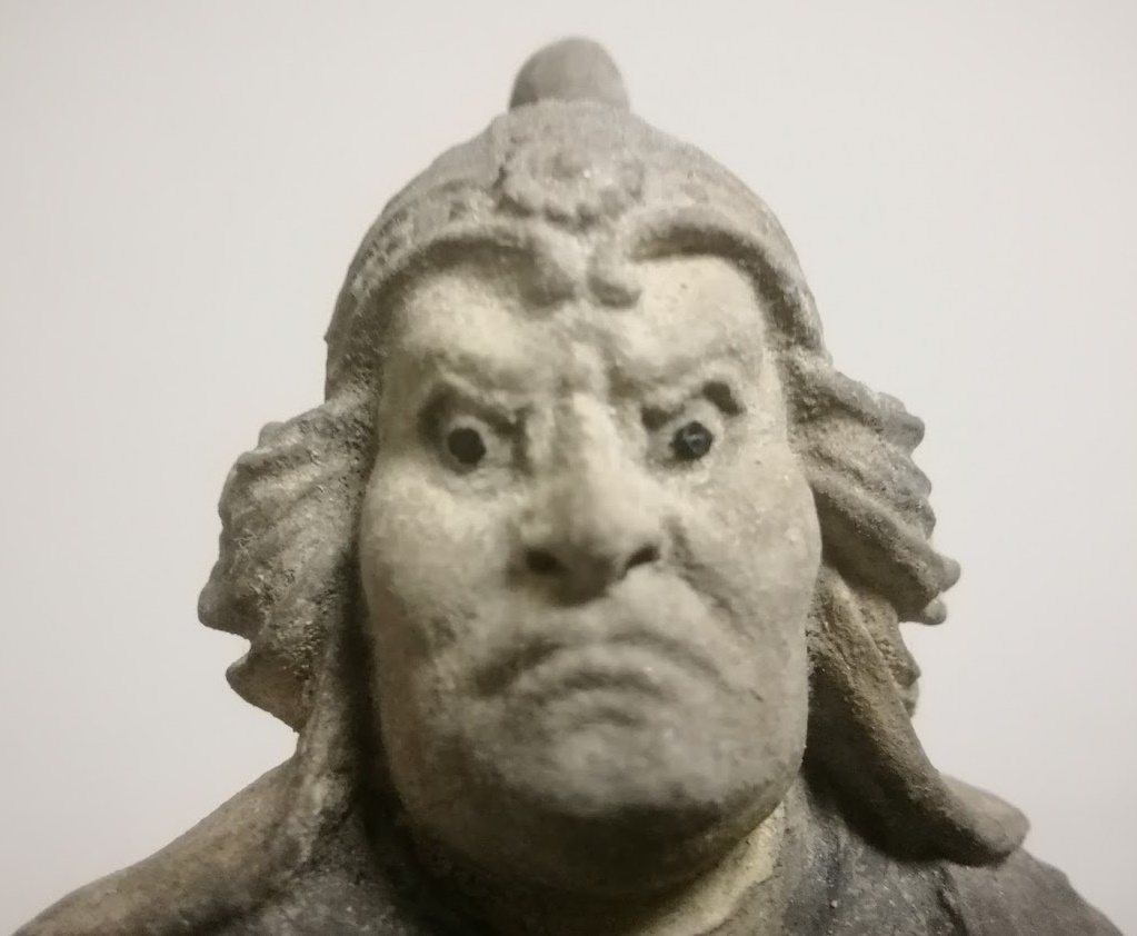 口を〝への字〟に結んでいますが、怒りの表情を湛えていますね。