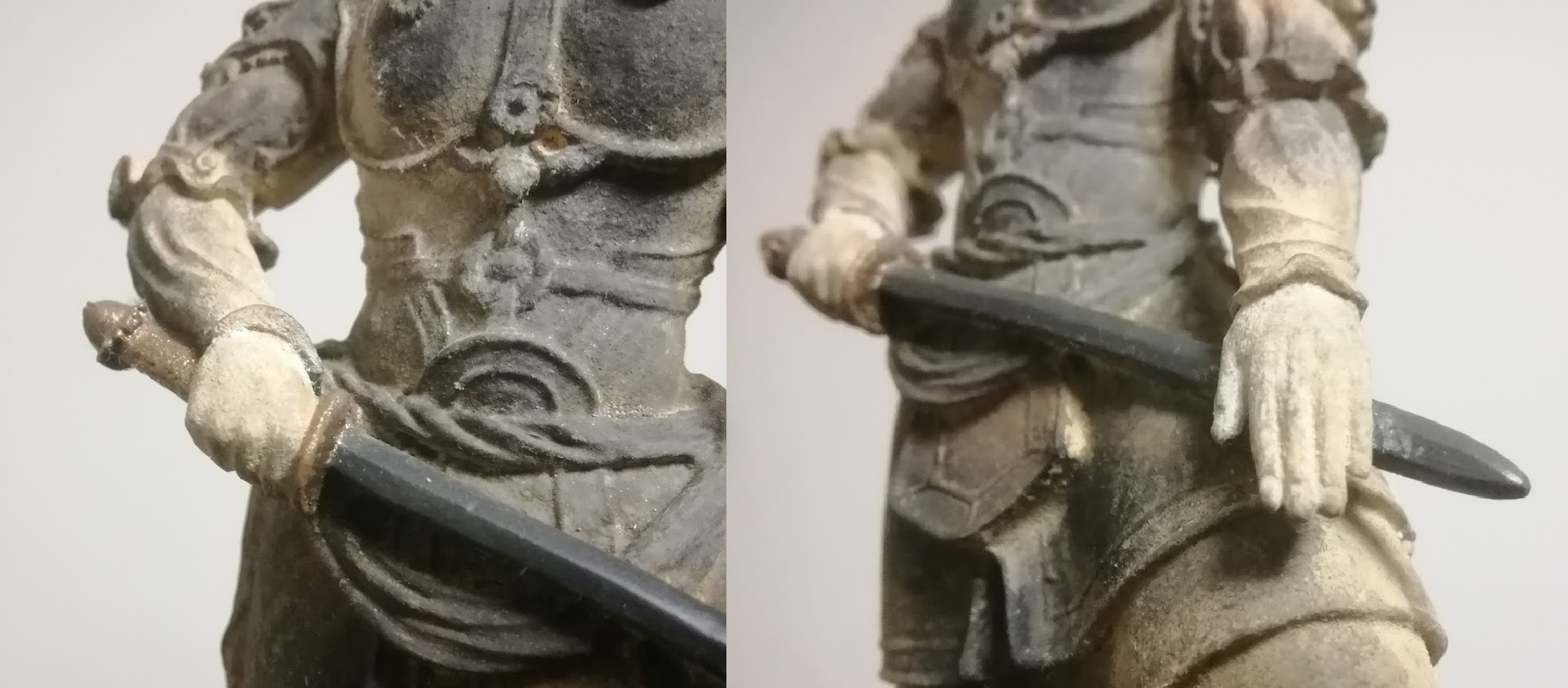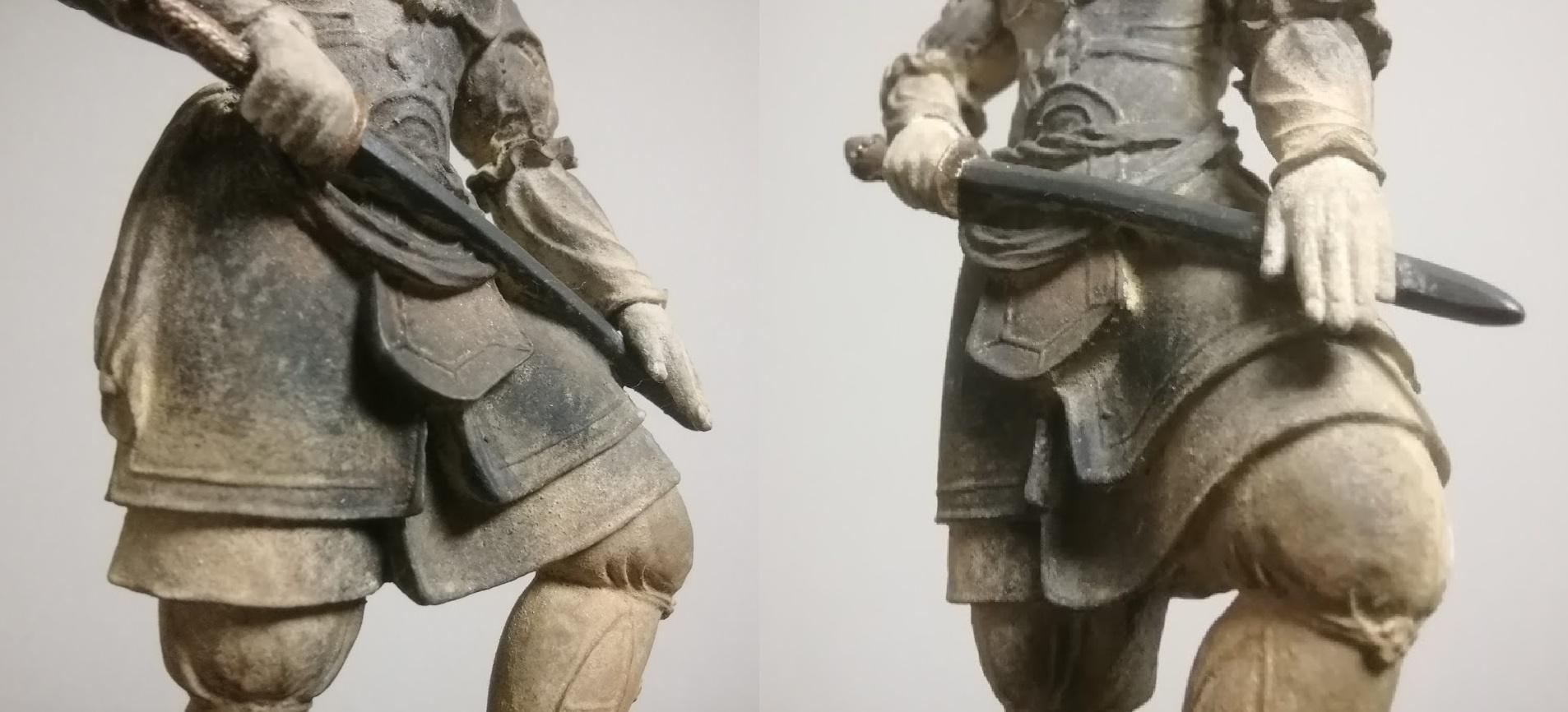 甲は重なっていますが、足の動きに応じてズレているところが、本当に鎧を着用している立体感を表現しています。