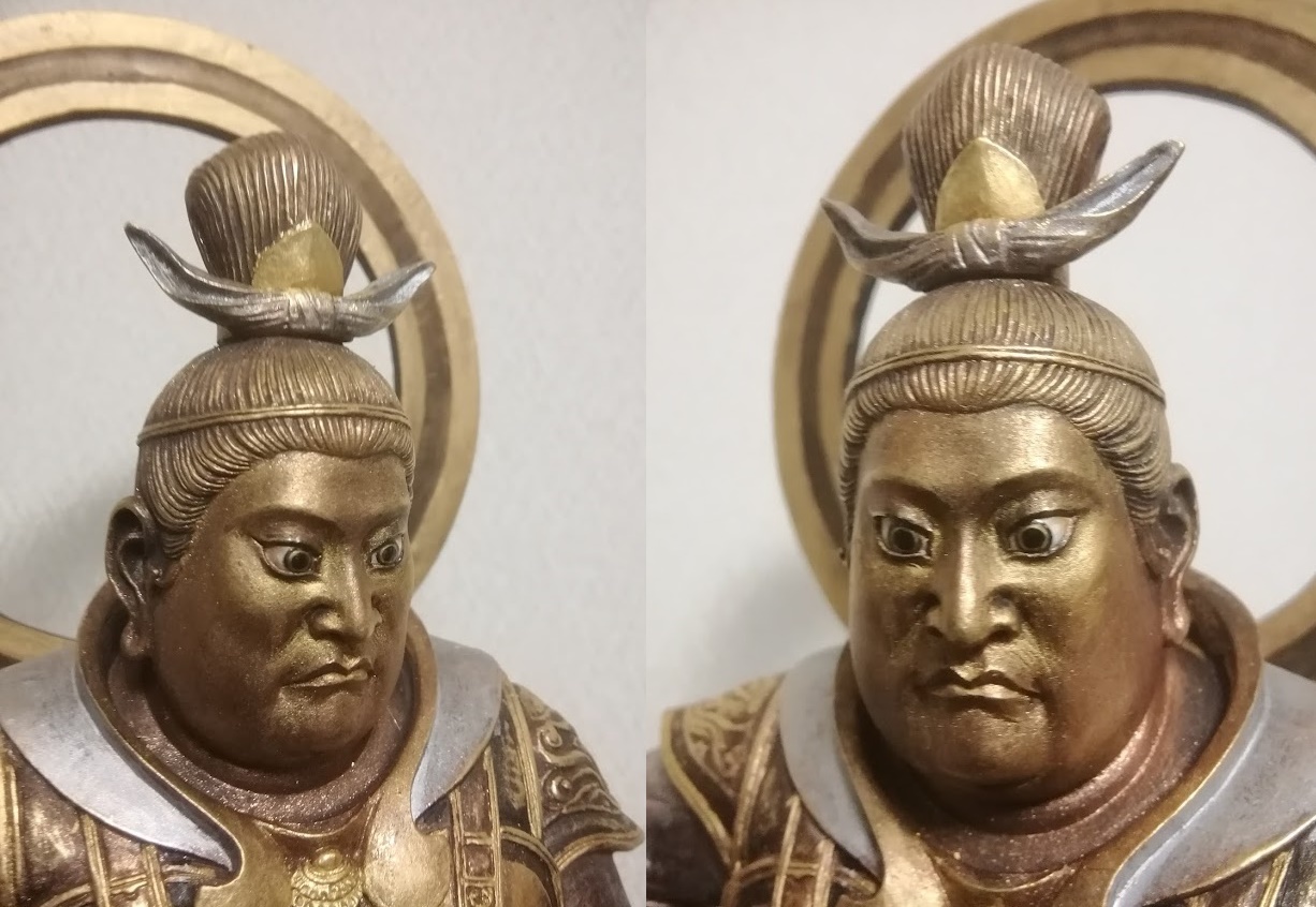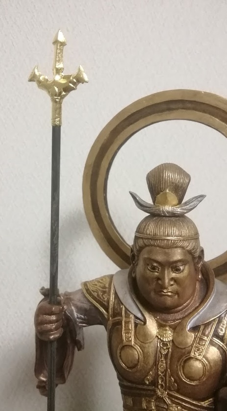 鎧の襟元が銀色ですがから、本当にメダル・カラーで飾られた毘沙門天なのです。