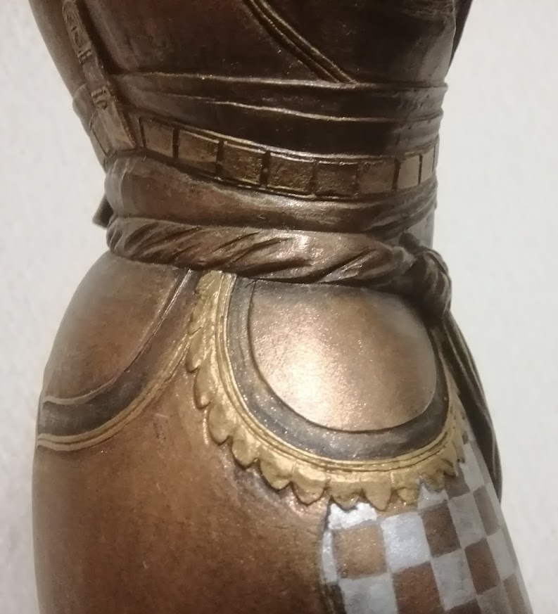 装飾を伴う脛甲もメダル・カラーの濃淡を用いて、鮮やかに塗り分けられています。