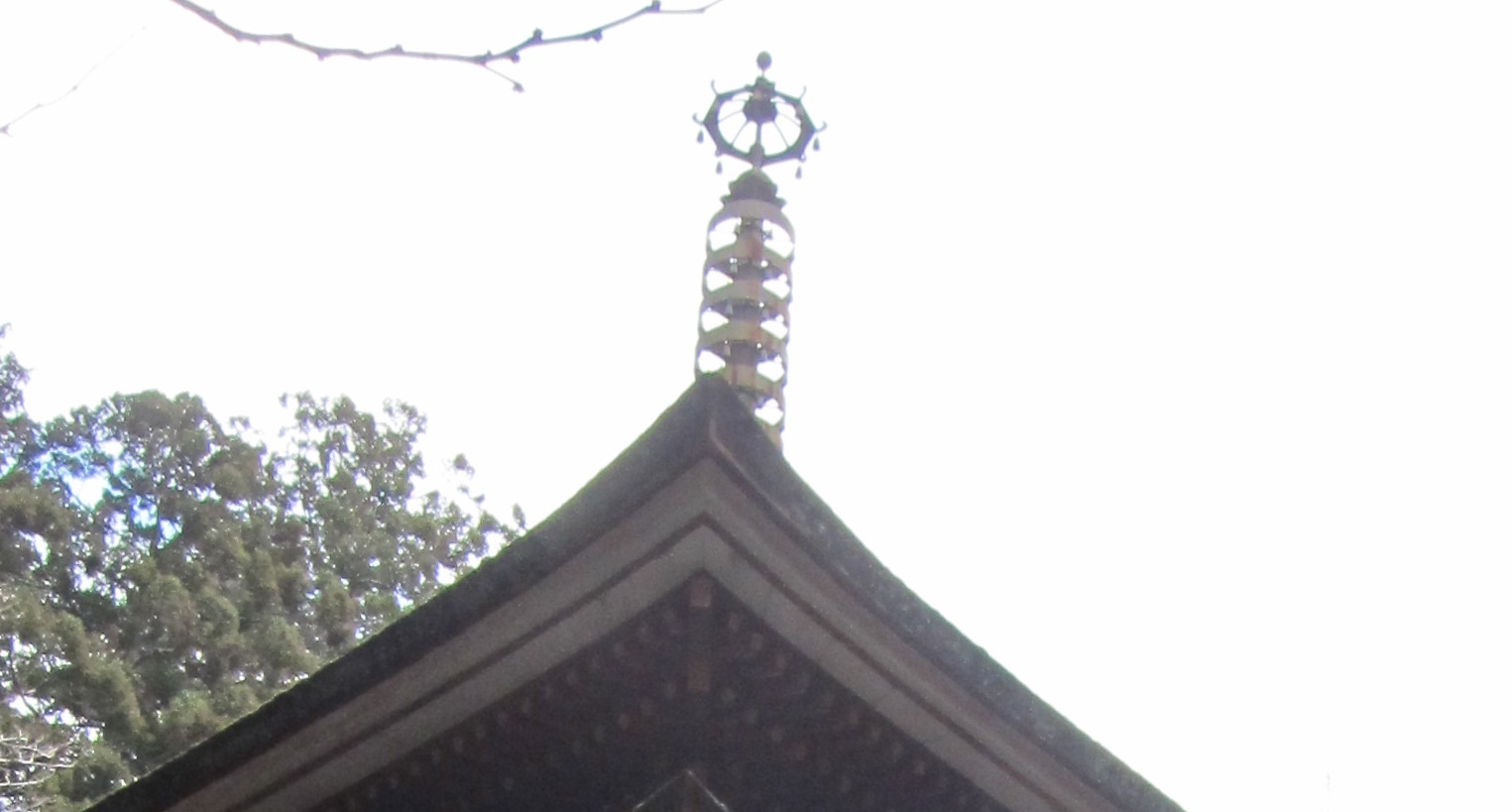 五重塔の屋根の頂上にある相輪(そうりん)頂上には普通「水煙」(すいえん)という雷・火事除けの呪(まじな)い装飾が取り付けられています。