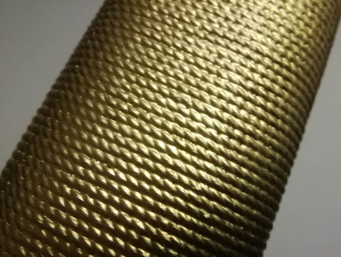 本物は、金の板に霰地を圧し出してボコボコを表現したものを巻き付けています。