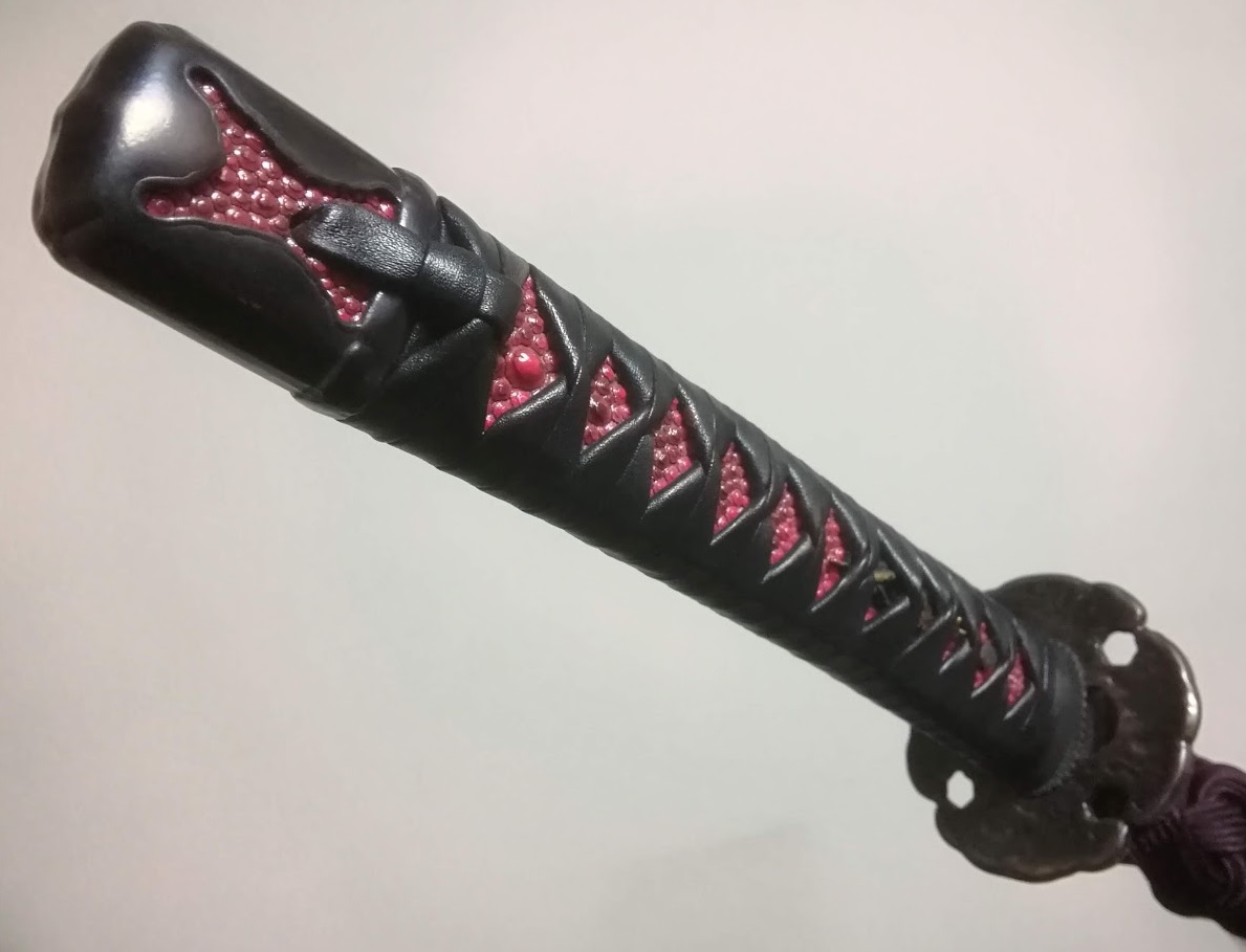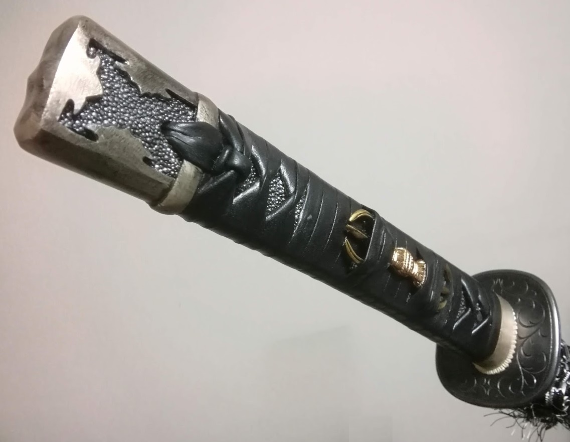 - 居合刀改造 黒鴉の柄巻・目貫変更