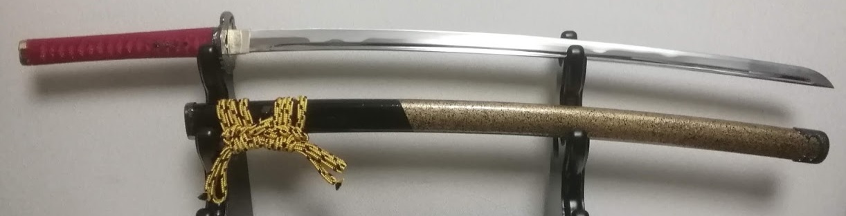 これまで美術刀鞘塗で数多の人柱経験を積み重ねてきたので脳内でのシミュレーション、すなわち既存の塗りの色変更や組み合わせを考え、小烏丸刀身平清盛拵で用いた凸塗と、既製品「姫鶴一文字」で用いられている斑塗(市販品では紫・金/黒・金/金・黒/赤・金の4パターンが存在します)の組み合わせを提案してみました。そしてできあがったのが以下の一振りです(斑塗は金・黒でお願いしています)。