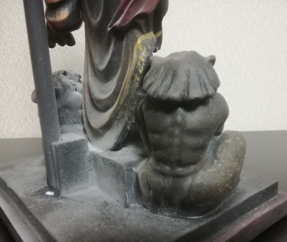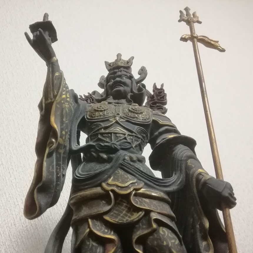 先日、東寺にMINIBUTSU様が製作・発売された「帝釈天騎象像」を迎えに行ったことについて触れました。今回は〝その仲間〟四天王のうち多聞天・大っきいサイズのお話でございます。