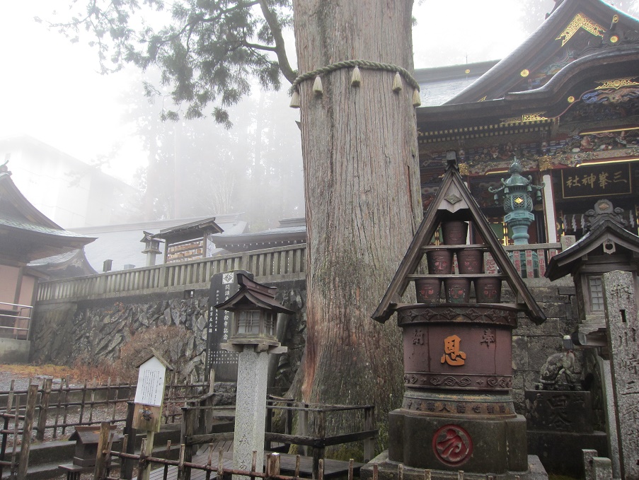 〝触る〟行為を否定する意見も聞きますが、〝パワーをもらう〟という願望で触る人は跡を絶ちませんからね。法隆寺回廊の柱(いわゆるエンタシスの柱)もスリスリされて、表面が削られています。〝撫でると削れる〟ということを踏まえないと、時間は掛かりますが法隆寺回廊の柱は〝逆エンタシス〟になるでしょうし、三峯神社の神木にも穴が開いてしまうでしょう。