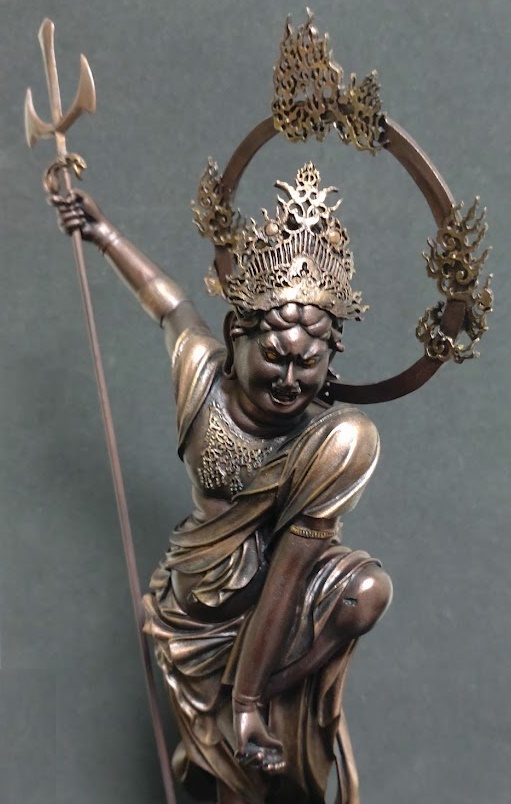 烏瑟沙摩明王の姿がメインということで、視線が烏瑟沙摩明王に向けられる様に三叉戟は銅の単色塗りにしたそうです。