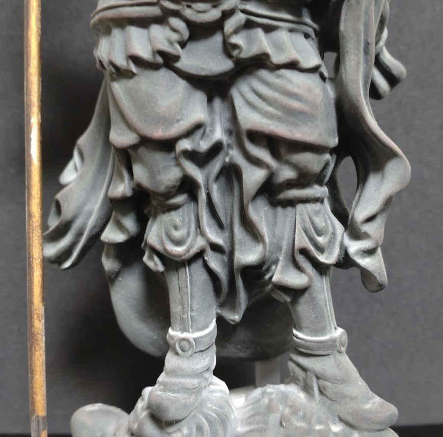 増長天の本体、そして踏まれている邪鬼、そして台座の〝埃っぽさ〟は塗装で表現されているものです。〝汚れかっ〟と思って擦ると落ちてしまうので、取り扱いには注意を要します。