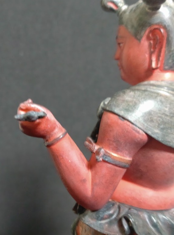 ここまで集中的に観察すると、三鈷杵の柄の部分に残っている赤い塗料のはみ出しが目に付いてしまいます。