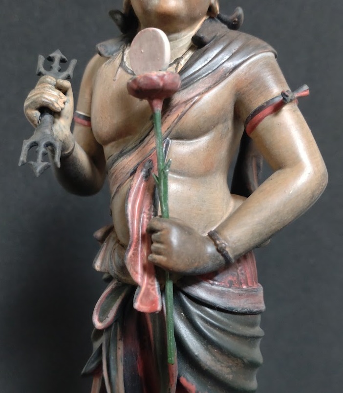 それにしても尖り三鈷杵を持っている右手・右腕の塗りが見事ですね。